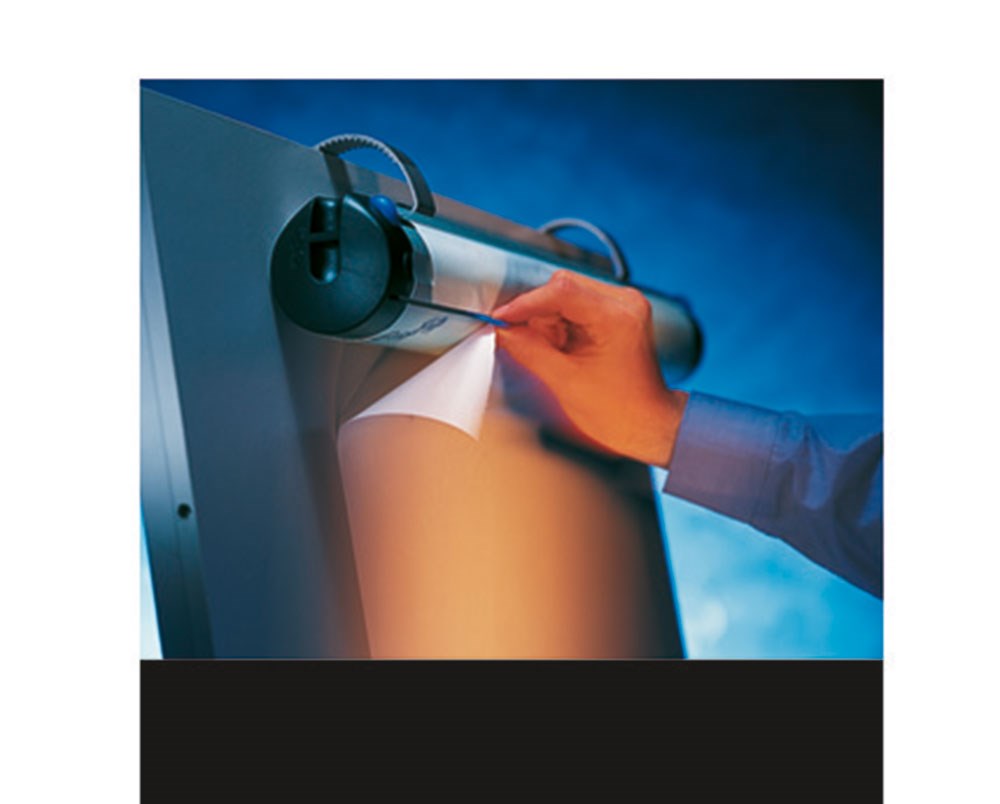 Prijenosni flipchard u laganom aluminijskom kućištu s bijelom folijom koja statički prijanja na svaku ravnu podlogu. Pisanje whiteboard markerima i suho brisanje. Kućište sadrži sklopive kuke za vješanje na vrata, ploču i slično, intregralni nož za rezanje folije na željenu dužinu. Remen za nošenje preko ramena.