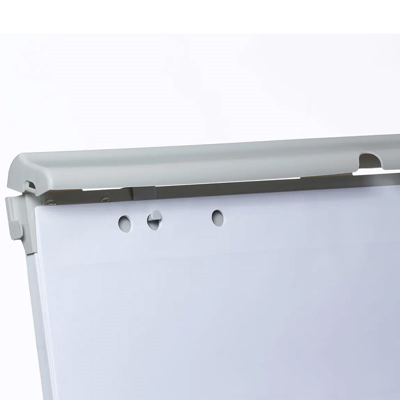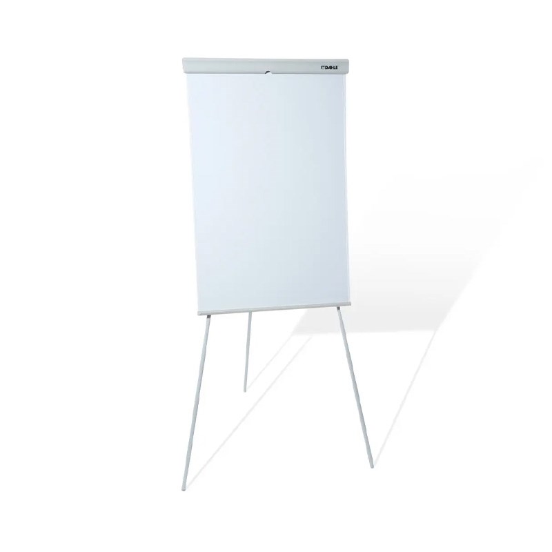 Magnetna bijela ploča 68x92 cm za pisanje whiteboard markerima, korištenje magneta i držanje flipchart blokova. Tri podesive metalne noge, ladica za pribor. Metalni pomični klinovi sa steznim poklopcem za držanje blokova, jednostavno podešavanje prema razmaku rupa na bloku. Dvije bočne sklopive ruke za držanje plakata.