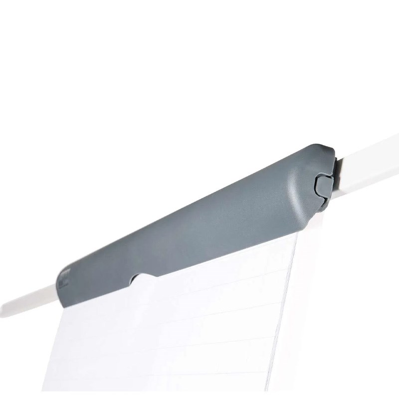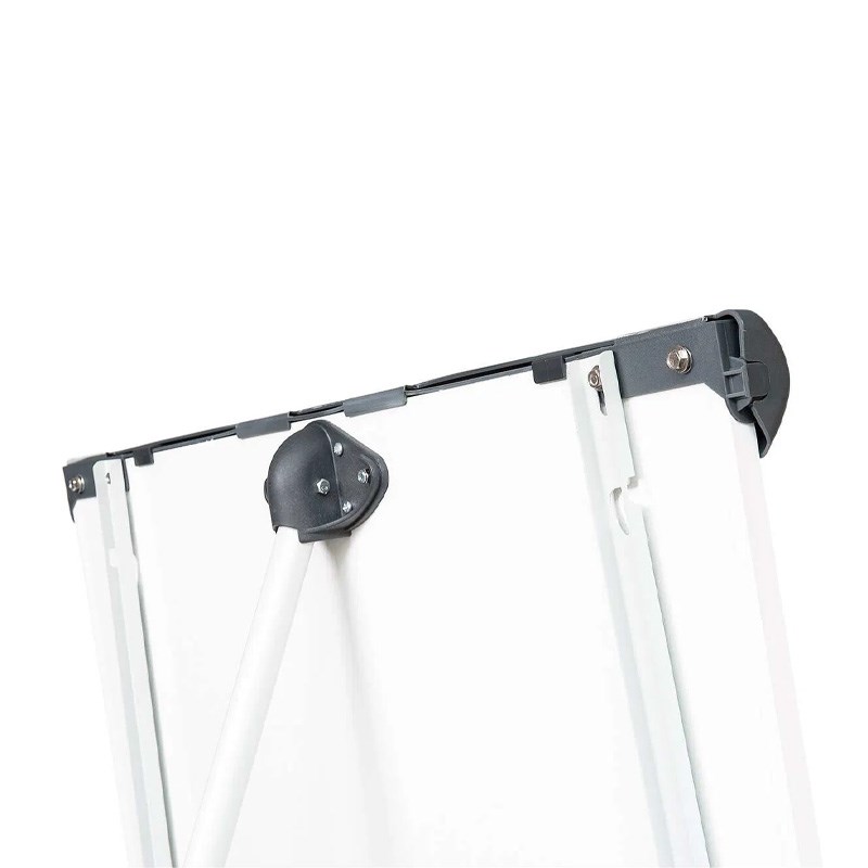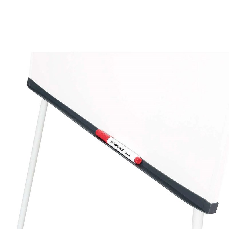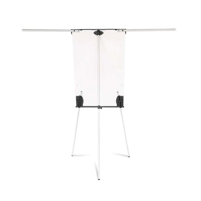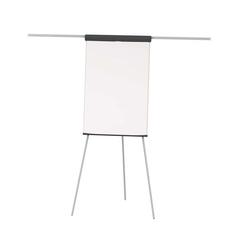 Magnetna bijela ploča 66x97 cm za pisanje whiteboard markerima, korištenje magneta i držanje flipchart blokova. Tri podesive metalne noge, ladica za pribor.