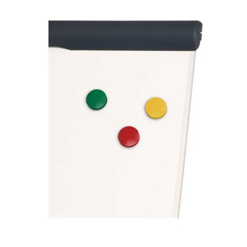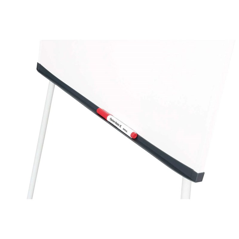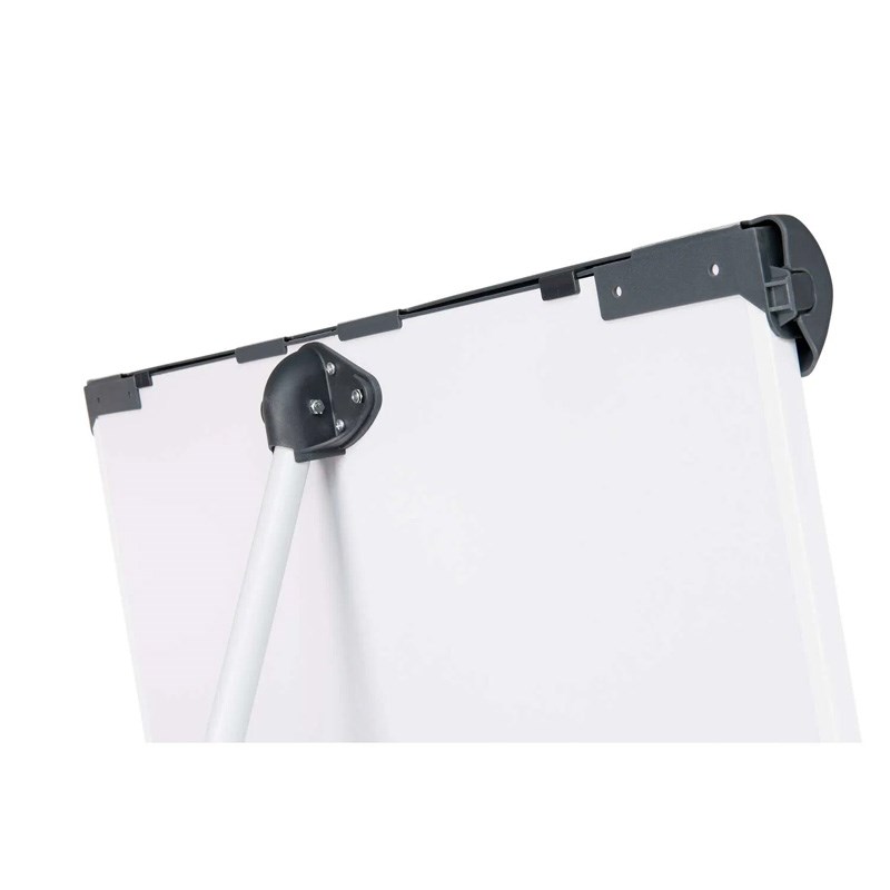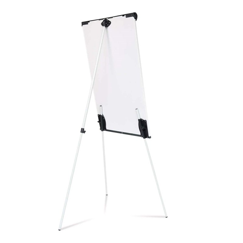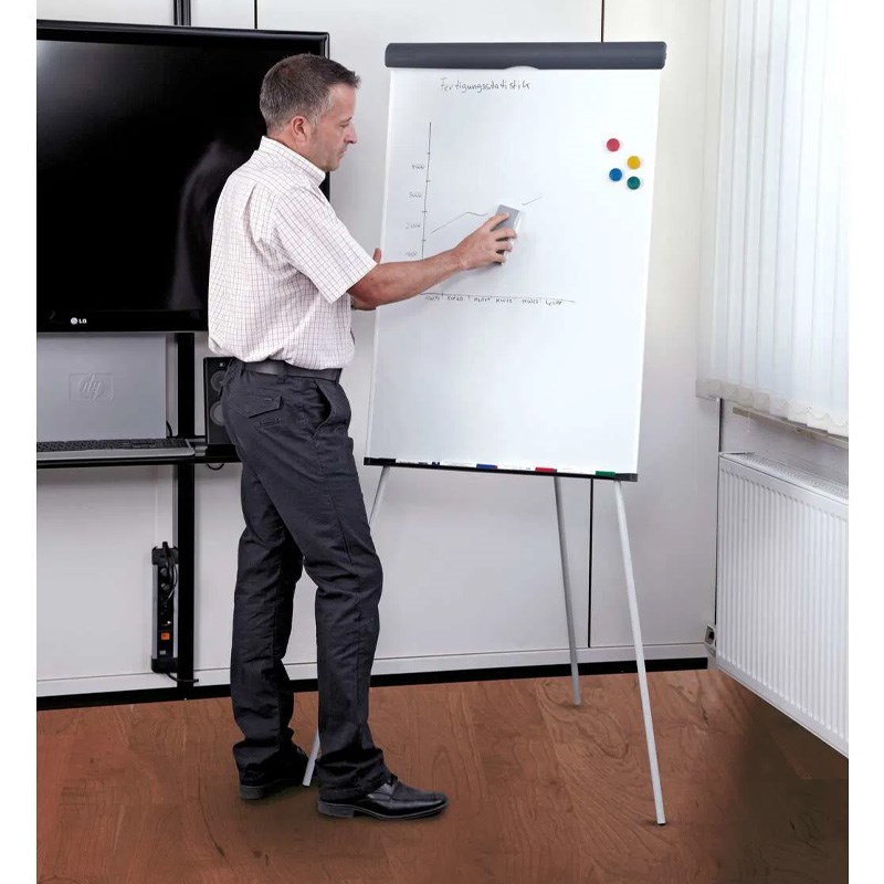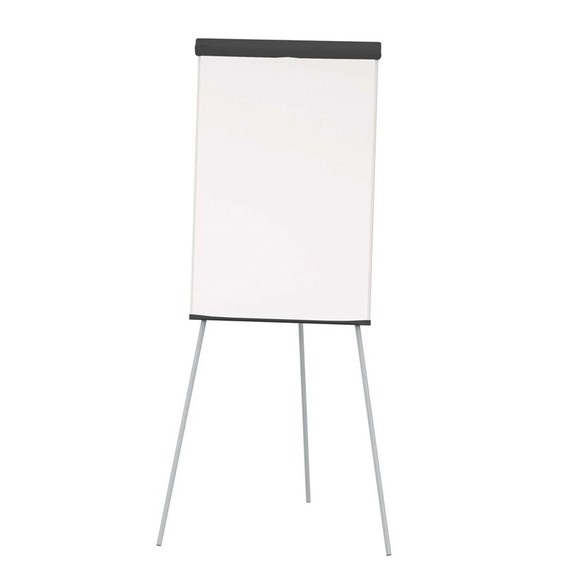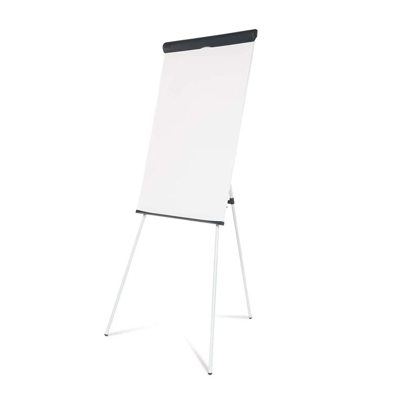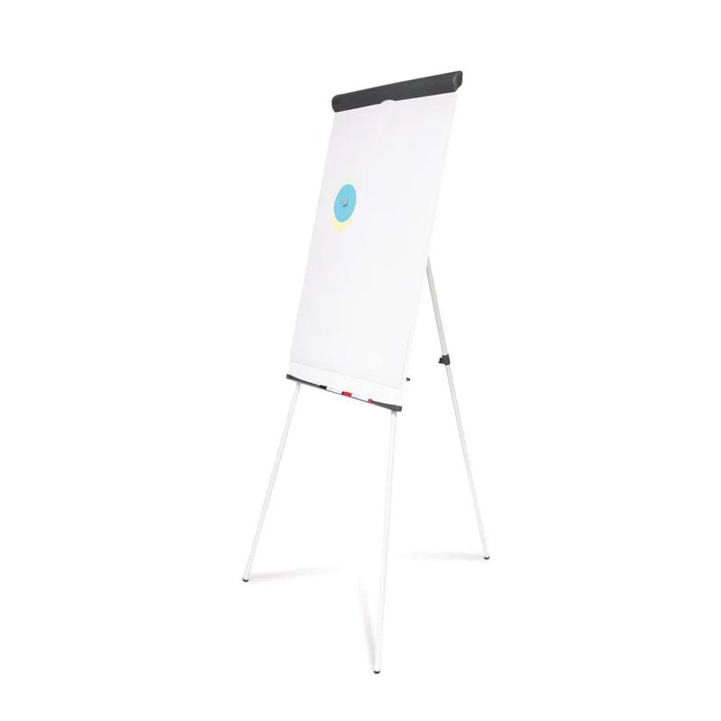 Magnetna bijela ploča 66x97 cm za pisanje whiteboard markerima, korištenje magneta i držanje flipchart blokova. Tri podesive metalne noge, ladica za pribor.