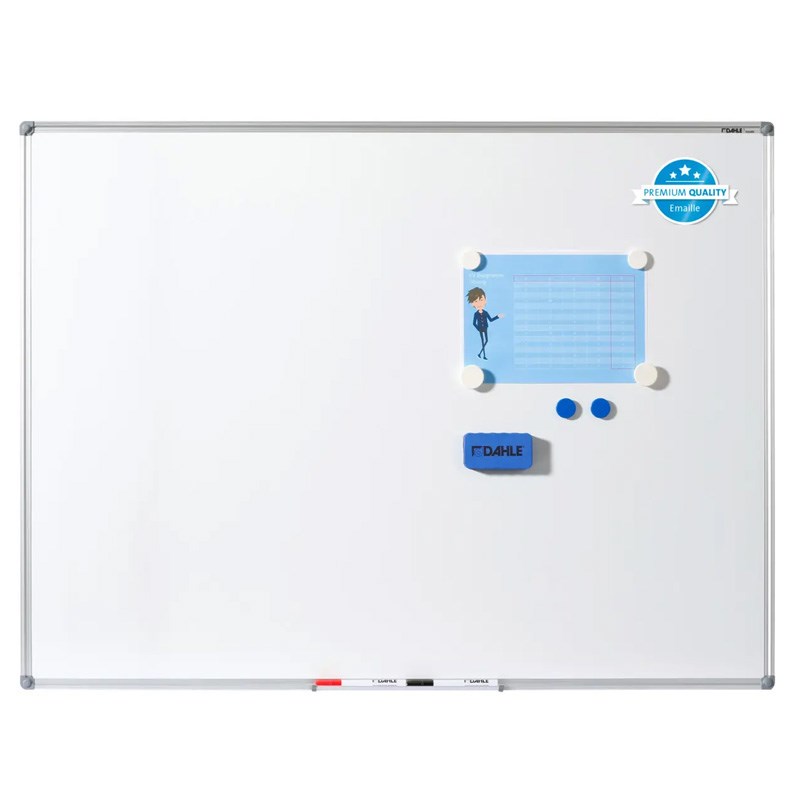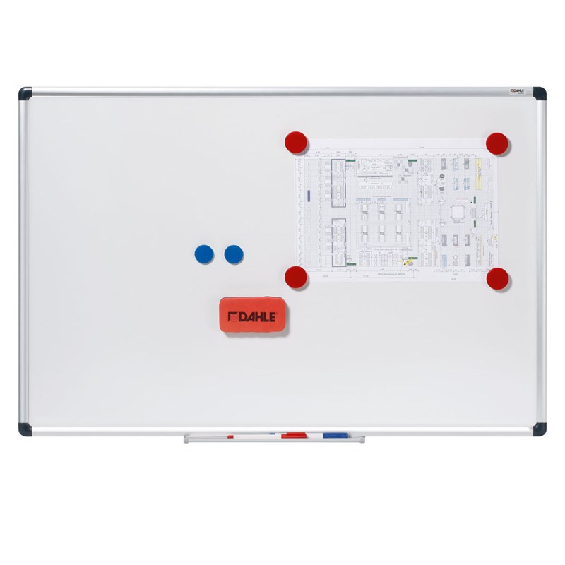 Profesionalna ploča s visokokvalitetnom bijelom emajliranom površinom za pisanje izrađenom od e³ keramičkog čelika. Magnetne, otporne na grebanje, lomljenje i savijanje. Optimalna izdržljivost. Aluminijski okvir s plastičnim kutevima, ladica za pribor.