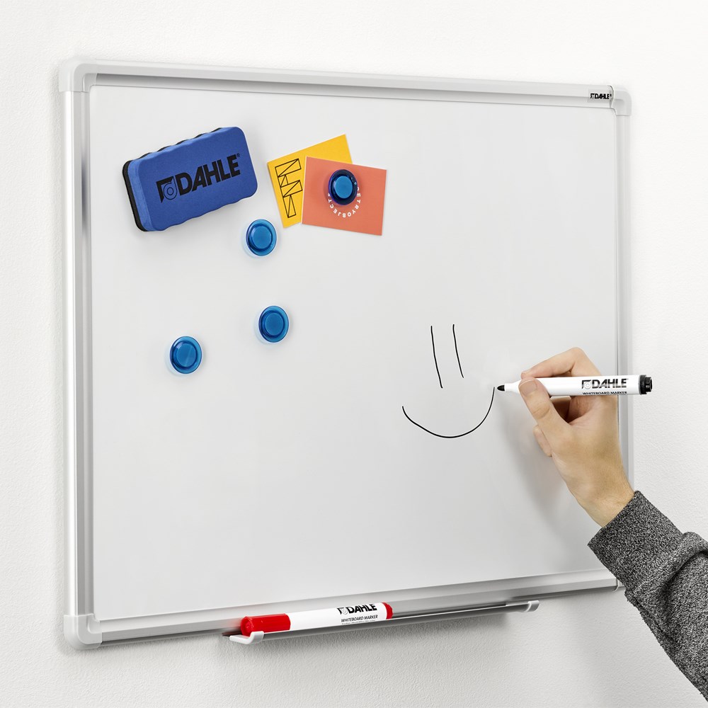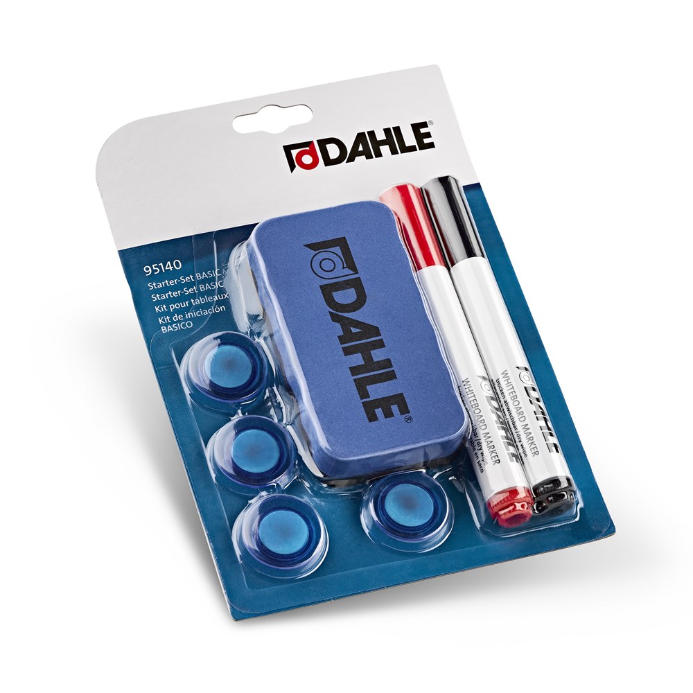 Početni komplet za bijele ploče: 2 markera (crni i crveni), 4 magneta o30 mm i magnetni brisač.
