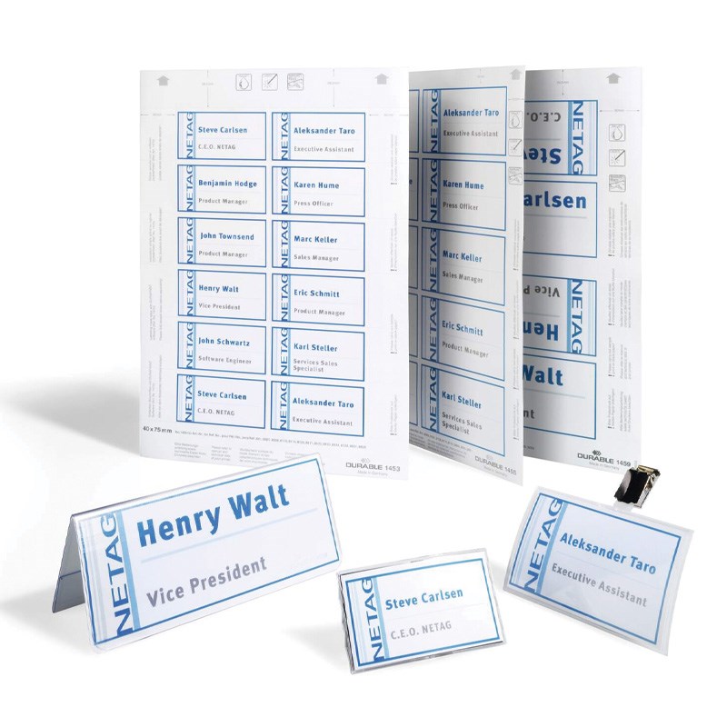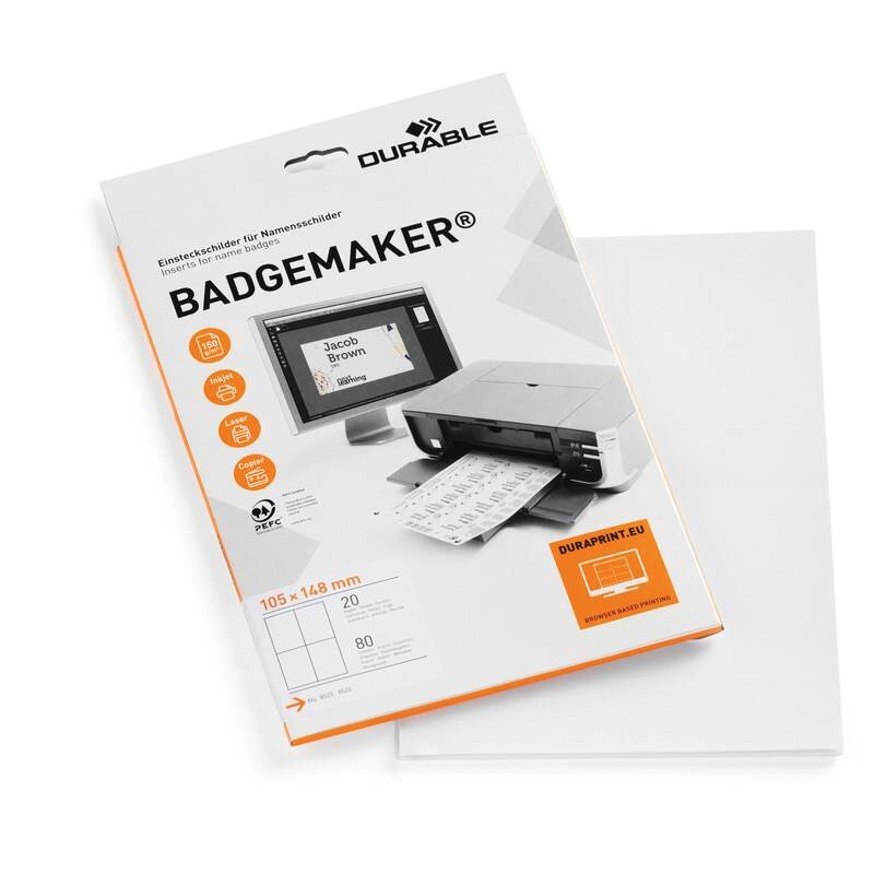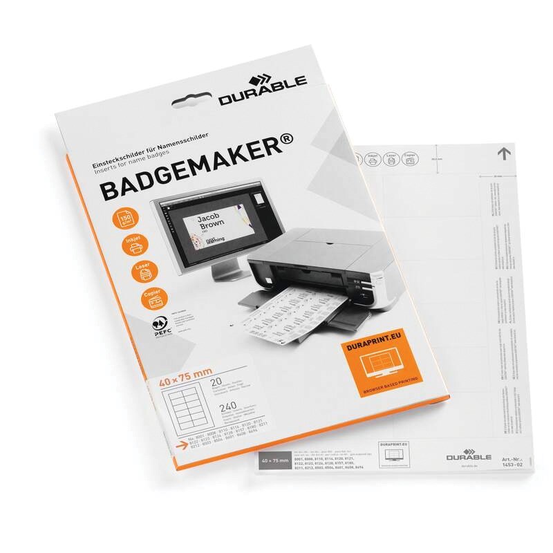 Za profesionalno ispisivanje umetaka imena i akreditacija na laserskim ili tintnim pisačima. BADGEMAKER® listovi u A4 formatu izrađeni od PEFC papira s mikroperforacijom na potreban format.