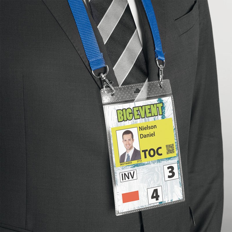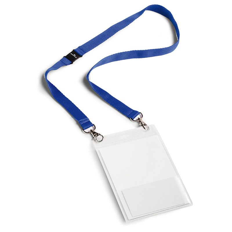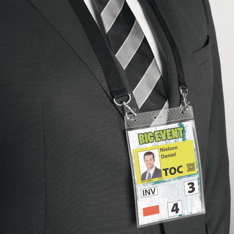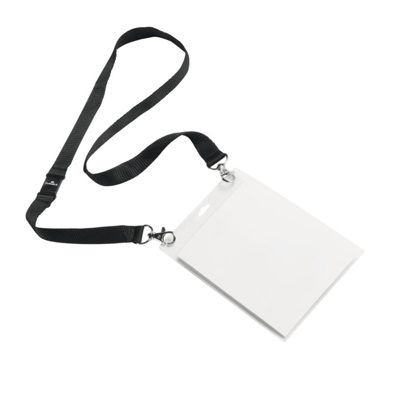 Idealno za sajmove, kongrese, VIP ili velike događanja. Etui za akreditacije od polipropilena s kartončićem A6 formata, tekstilnom trakom 20 mm širine s kopčom i 2 karabinjera. Dodatni džep za posjetnice. Dužina trakice 80 mm.