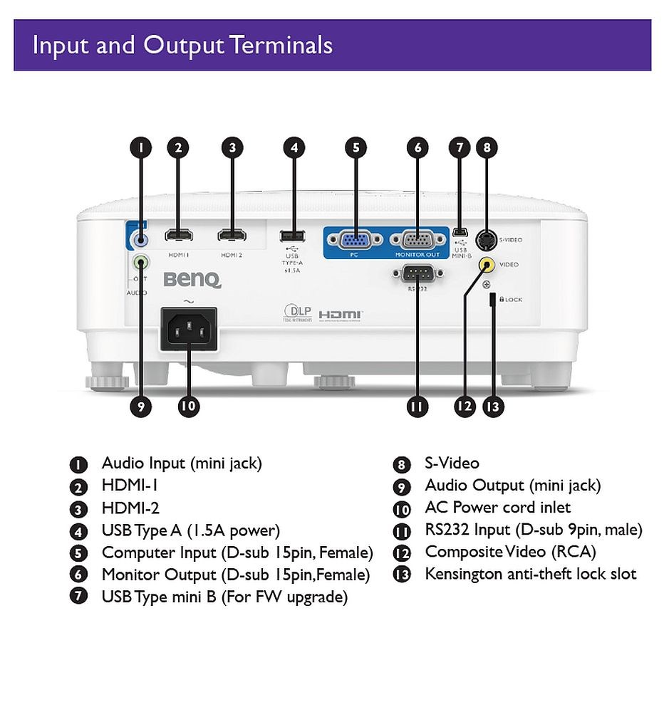 Priključci: VGA, 2xHDMI, USB, USB mini-Bx1, Audio In/Outx1, IR receiver x2, RS232, RCA
