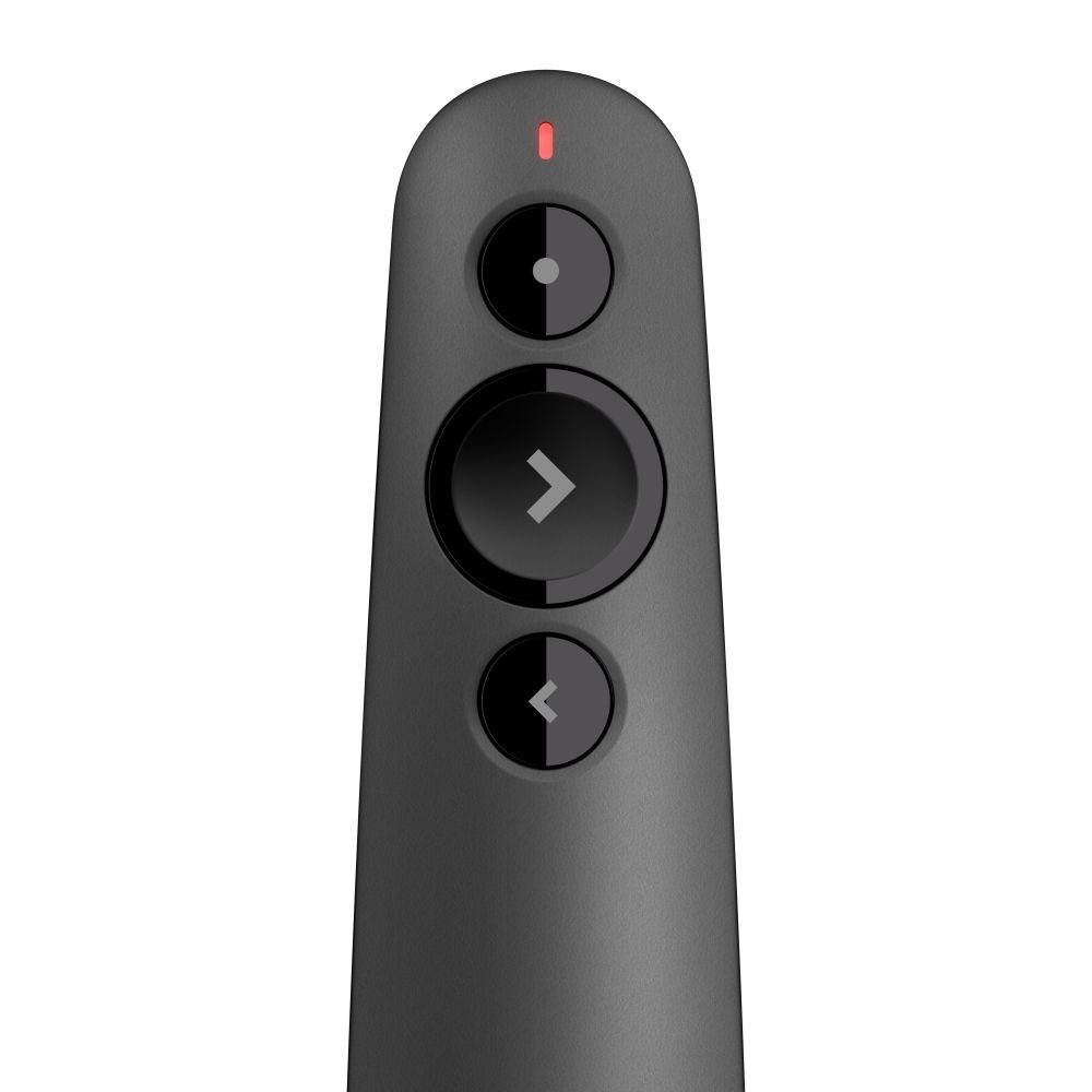 Prezenter R500, vam omogućuje navigaciju slajdova i laserski pokazivač sa do 20 metara. Izvedite prezentaciju s lakoćom i povjerenjem zahvaljujući besprijekornom dizajnu s tri tipke i uređaju koji udobno leži u ruci. Možete prilagoditi gumbe, provjeriti trajanje baterije i postaviti mjerač vremena na zaslonu u aplikaciji za prezentaciju Logitech.