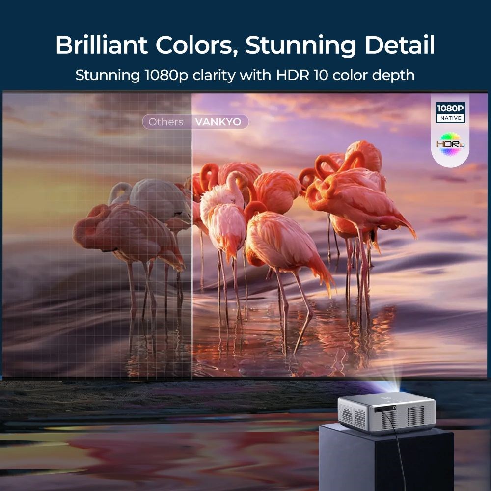 Vankyo V700G nudi 400 lumena svjetline, oštru 1080P rezoluciju i snažni Dolby Audio kroz dvostruke 8W zvučnike.