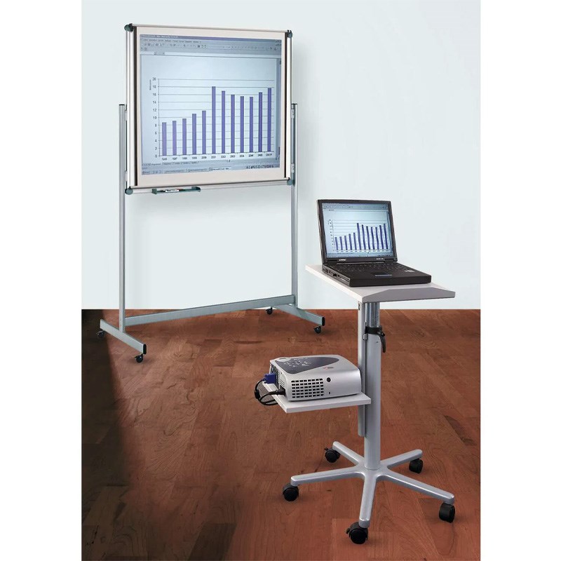 Profesionalni prijenosni stalak za projektore: najviša stabilnost i vrhunska kvaliteta. Visokokvalitetni materijali, robusna tehnika primjene, lagano spuštanje potporne ploče pomoću tehnologije zračnog prigušivača.