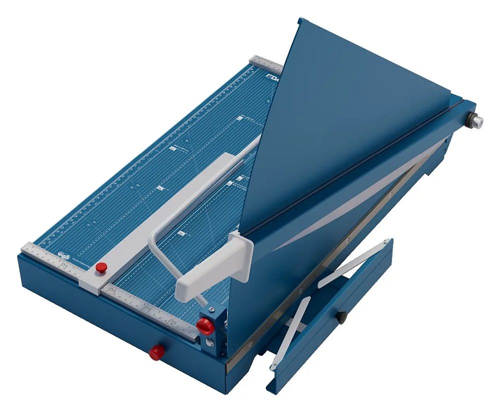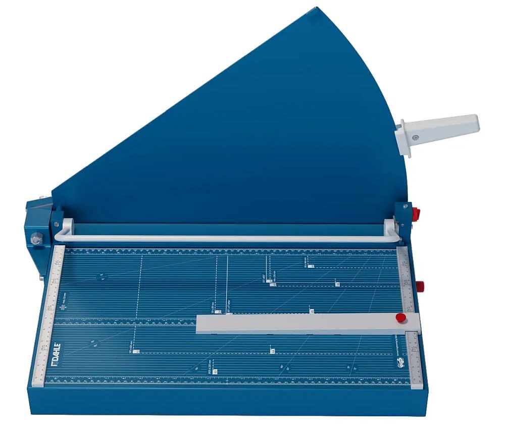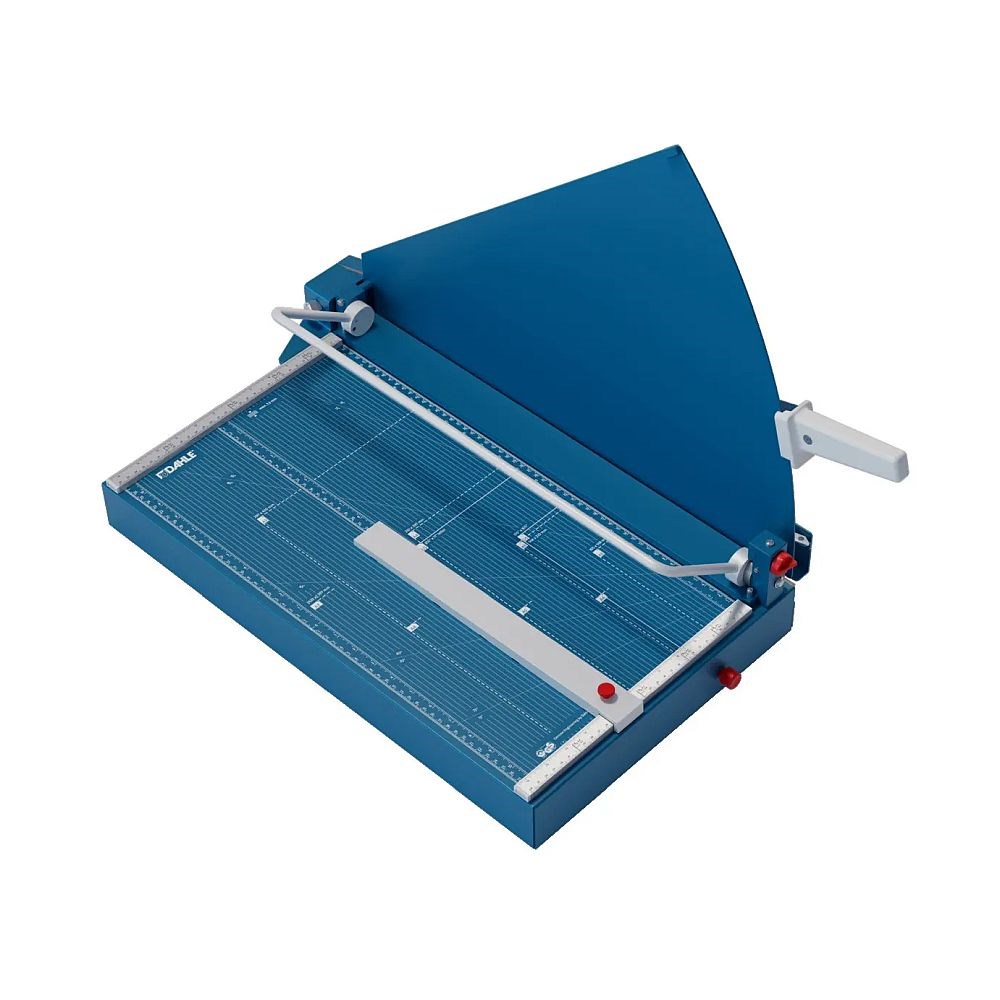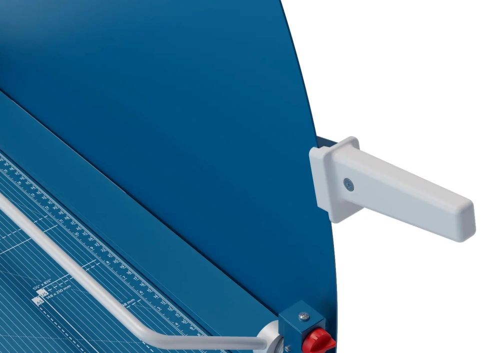 Giljotinski rezač papira za komercijalnu primjenu. Osim papira reže i neke druge materijale. Vrhunska sigurnost je zajamčena s metalnim štitnikom. uz to precizno reže do 35 listova 80 gramskog papira. Gornja i donja oštrica su od kvalitetnog, oštrivog brušenog čelika, a tu su i učvršćujuća manualna preša i dvije vodilice s oznakama u cm i inčima te DIN mjerama. Ima podesiv stražnji graničnik, kao i izvlačiv graničnik odrezanog materijala (do 210 mm), a metalna radna ploha ima oznake u A formatima i kutove