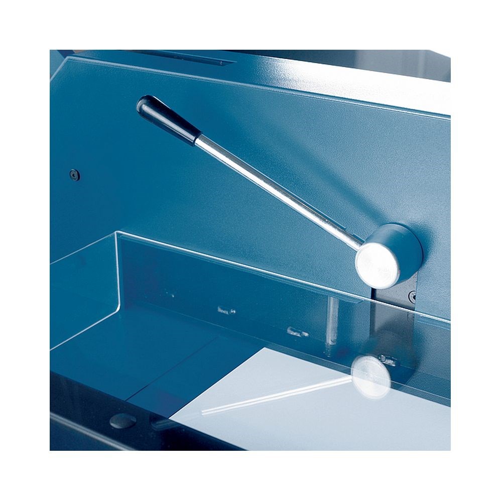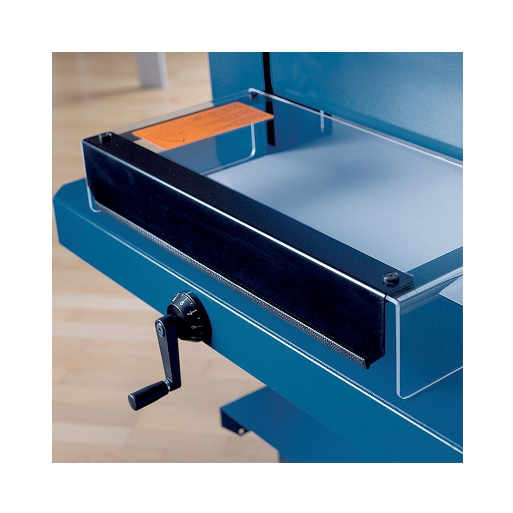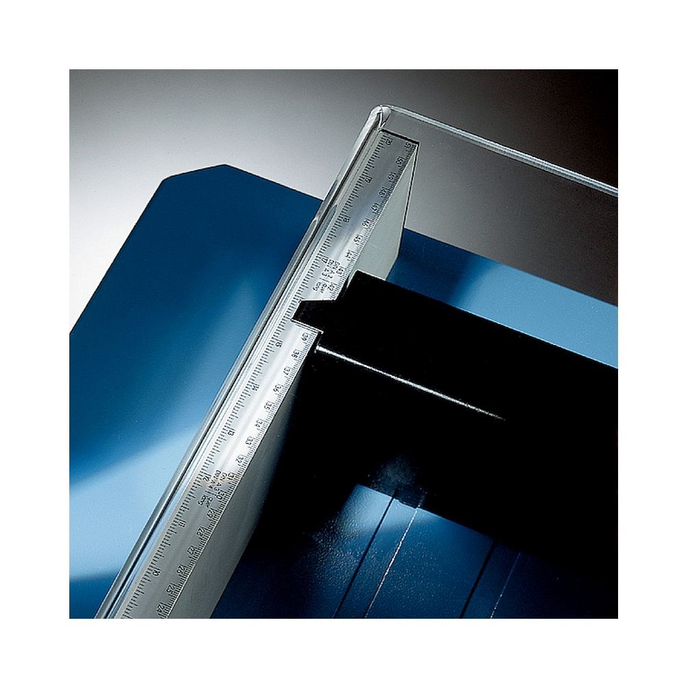 Dahle 846 je rezač za teške radne uvjete i pogodan je za brzo i točno odvajanja cijele hrpe ispisa ili precizno dimenzioniranje velike buntova papira, sve to uz apsolutnu sigurnost. Nudi niz praktičnih obilježja; milimetarsku točnost postižete zahvaljujući navojnom pomaku stražnjeg graničnika. Ima vijcima učvršćen, brusivi gornji nož, podizna sigurnosnu zaštitu od pleksiglasa te brzo manualno stezanje bunta koji se reže