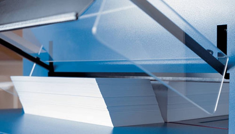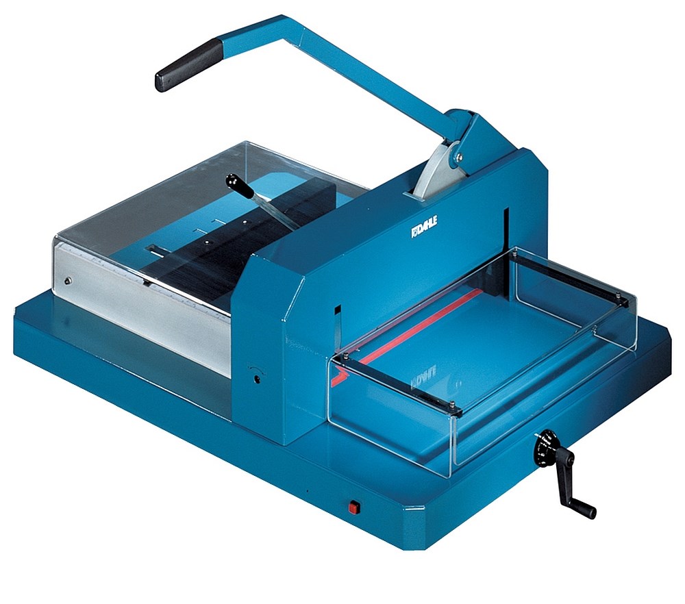 Dahle 848 je rezač za teške radne uvjete i pogodan je za brzo i točno odvajanja cijele hrpe ispisa ili precizno dimenzioniranje velike buntova papira, sve to uz apsolutnu sigurnost. Nudi niz praktičnih obilježja; milimetarsku točnost postižete zahvaljujući navojnom pomaku stražnjeg graničnika. Ima brušeni gornji nož, sigurnosnu zaštitu od pleksiglasa, pri čemu je prednja strana podizna, a stražnja fiksna te brzo manualno stezanje bunta koji se reže