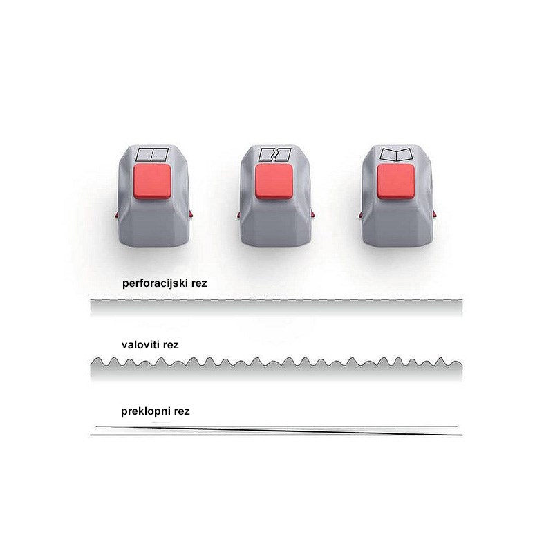 U setu se nalaze izmjenjive rezne glave za valoviti, perforirani ili mjesto preklapanja (falc) te podložna letva kako bi se ostvarile te operacije.