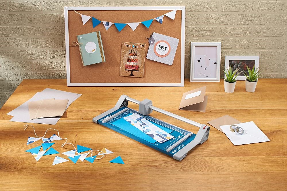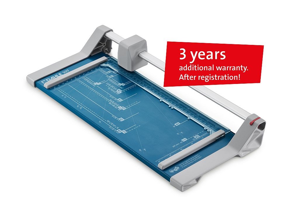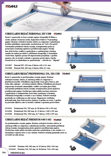 Rezač 3. generacije za brzo rezanje papira, fotografija ili filma u uredu, malom i kućnom uredu, kapaciteta 8 listova 70 gramskog papira. Brušene rotirajuće kružne oštrice su osigurane u plastičnom kućištu poboljšane ergonomije, usredotočene na "rad s dva prsta". Automatski pritiskom tokom rezanja, transparentna preša sa pomoćnim oznakama sprječava proklizavanje papira. Uređaj ima dvije bočne vodilice s gradacijom u centimetrima i inčima, oznake na radnoj površini u veličinama fotografija, A formatima i kutovima