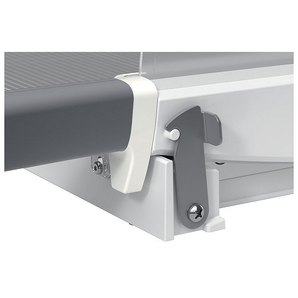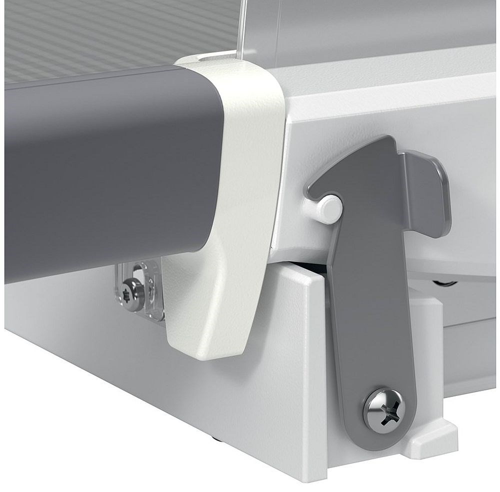 Prozirna ručna preša, ujedno zaštita noža, drži papir sigurnim, dok ergonomska ručka osigurava udobno i jednostavno rezanje.