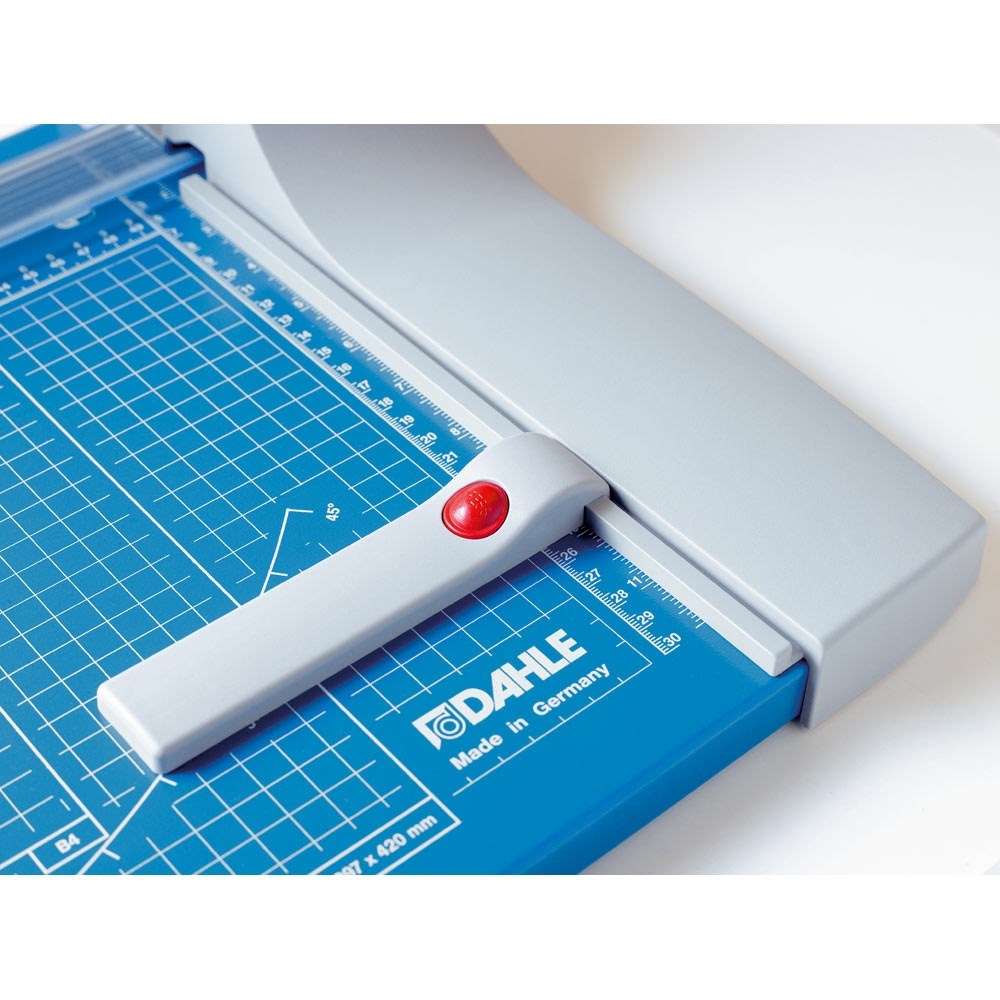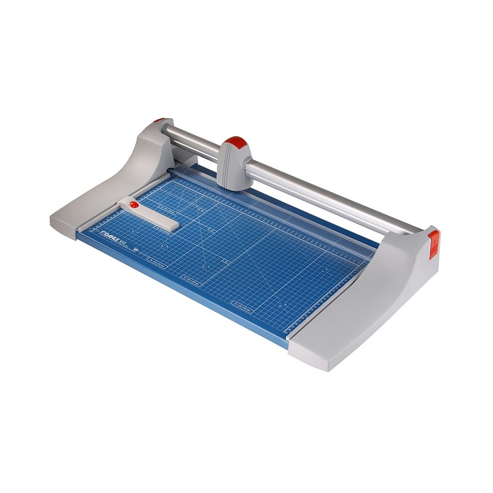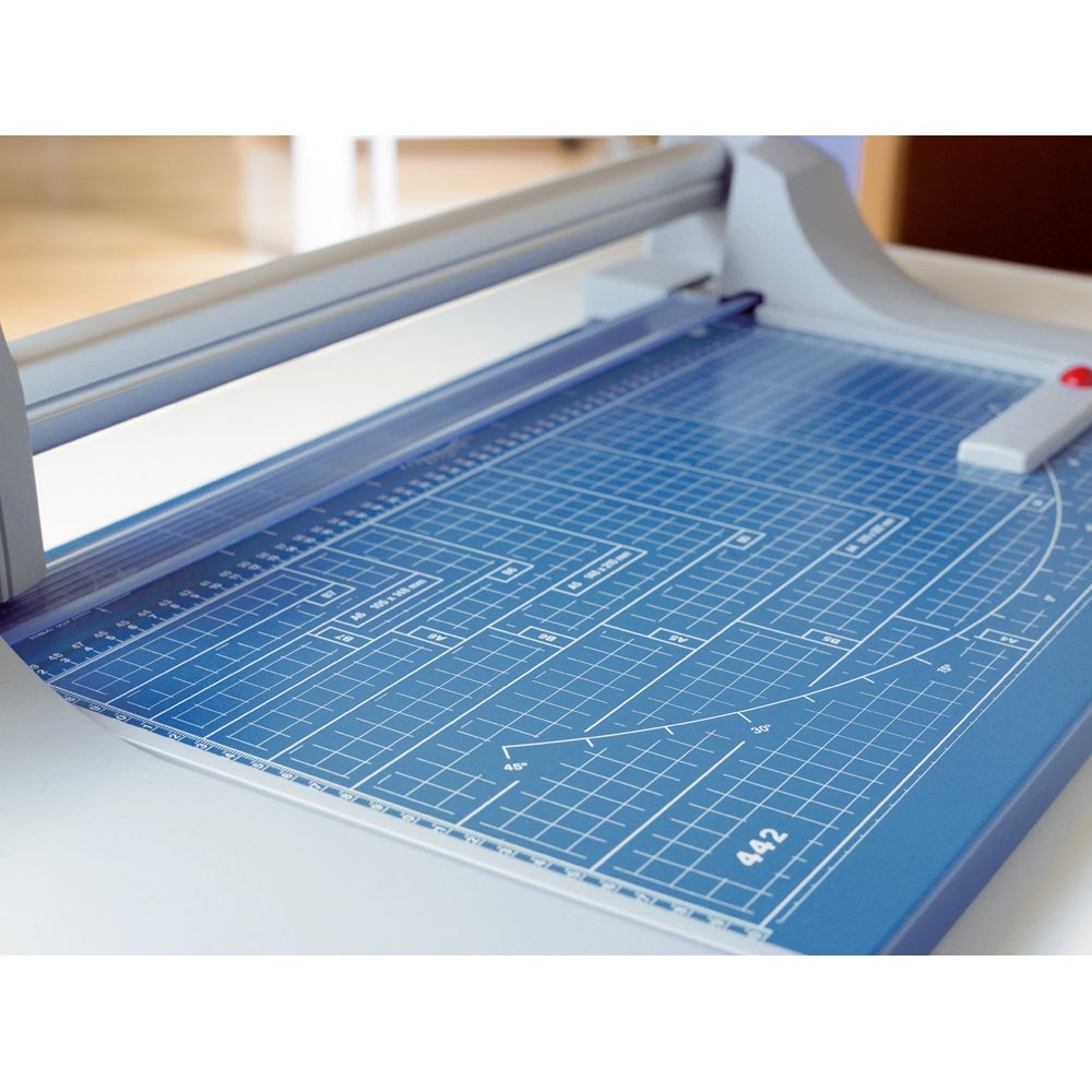 Za profesionalno rezanje papira, kapaciteta 35 listova 70 gramskog papira. Brušene rotirajuće kružne oštrice, iz ojačanog čelika su osigurane u plastičnom kućištu. Automatski pritiskom tokom rezanja, transparentna preša sprječava proklizavanje papira . Uređaj ima radnu plohu iscrtanu rasterom s gradacijom u cm, oznake u A formatima i mjerne letve u cm i inčima. Podesivi stražnji graničnik može se učvrstiti na obje strane.