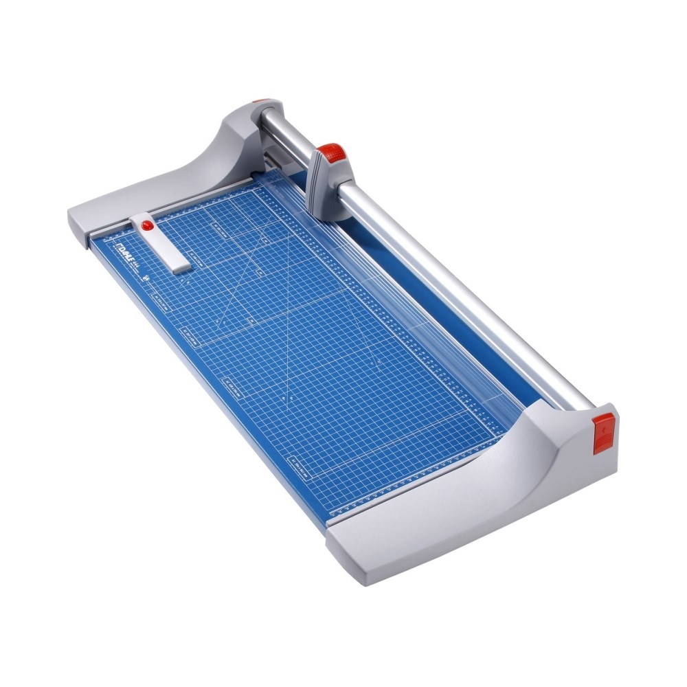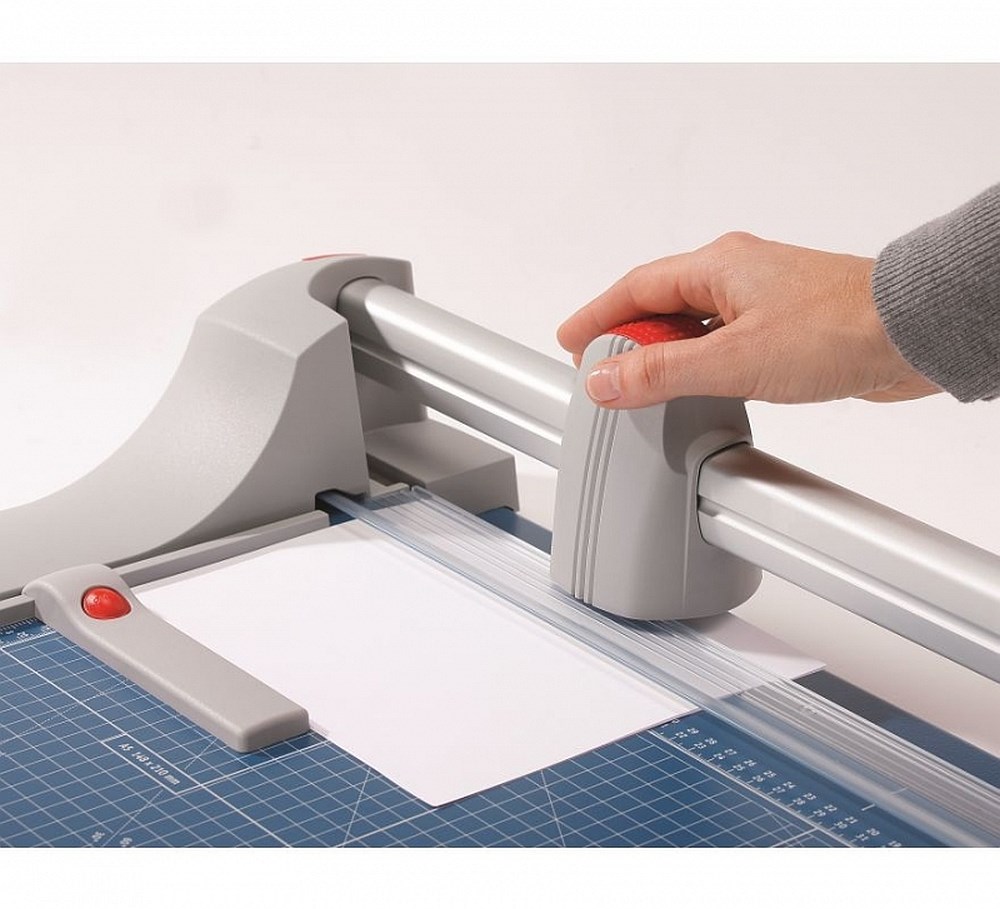 Za profesionalno rezanje papira, kapaciteta 30 listova 70 gramskog papira. Brušene rotirajuće kružne oštrice, iz ojačanog čelika su osigurane u plastičnom kućištu. Automatski pritiskom tokom rezanja, transparentna preša sprječava proklizavanje papira . Uređaj ima radnu plohu iscrtanu rasterom s gradacijom u cm, oznake u A formatima i mjerne letve u cm i inčima. Podesivi stražnji graničnik može se učvrstiti na obje strane.