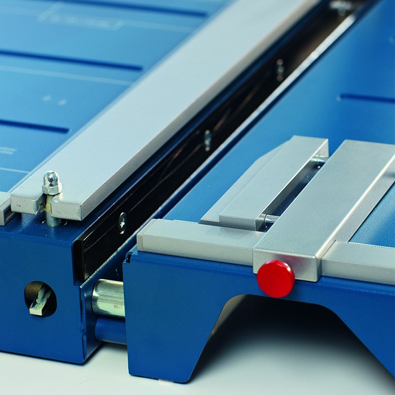 Gornja i donja oštrica su od kvalitetnog brušenog čelika, a tu su i automatska preša (koju je moguće isključiti) i vodilice s oznakama u cm i inčima. Ima podesiv stražnji graničnik, a metalna radna ploha ima oznake u A formatima