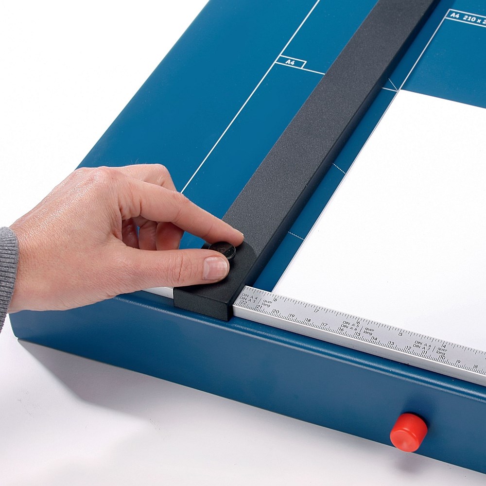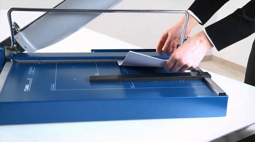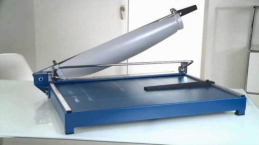 Giljotinski rezač papira za komercijalnu primjenu. Osim papira reže i neke druge materijale. Vrhunska sigurnost je zajamčena s rotacijskim štitnikom. uz to precizno reže do 35 listova 70 gramskog papira (28 listova 80 gramskog). Gornja i donja oštrica su od kvalitetnog, oštrivog brušenog čelika, a tu su i učvršćujuća manualna preša i dvije vodilice s oznakama u cm i inčima te DIN mjerama. Ima podesiv stražnji graničnik, kao i izvlačiv graničnik odrezanog materijala (do 210 mm), a metalna radna ploha ima oznake u A formatima i kutove