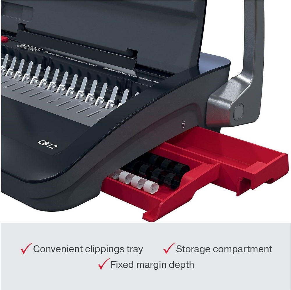 CombBind CB12 je pouzdan i kompaktan ručni stroj za uvez, savršen za osobnu upotrebu ili upotrebu u malim uredima s malim volumenom dokumenata.