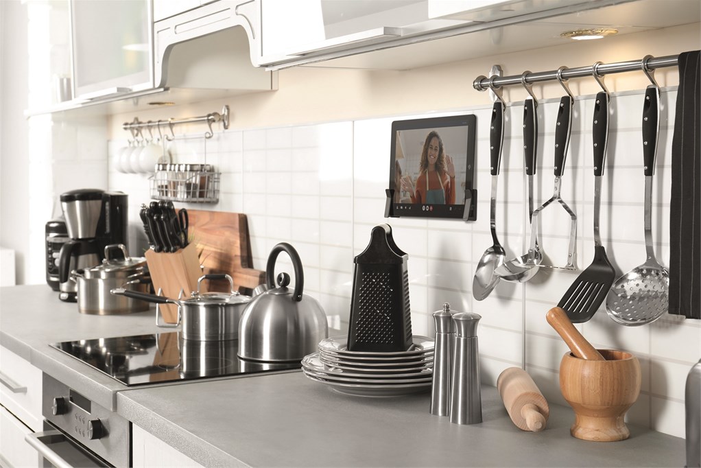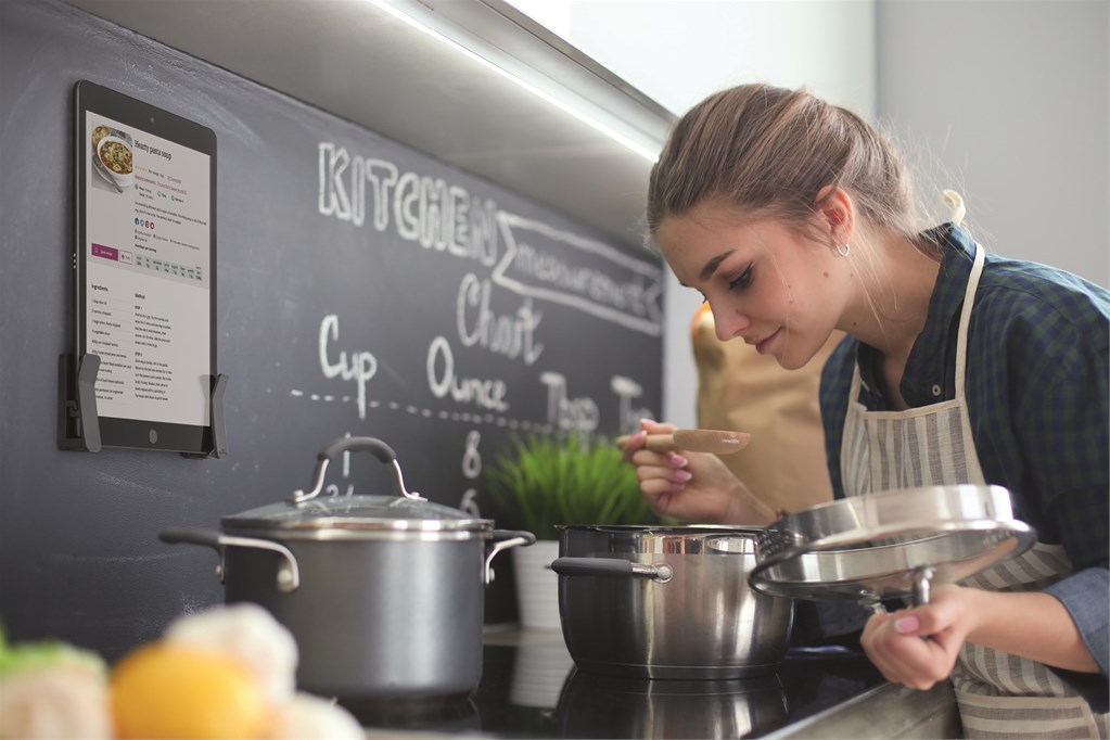 Univerzalni zidni nosač za montažu tableta i pametnih telefona koji štedi prostor.