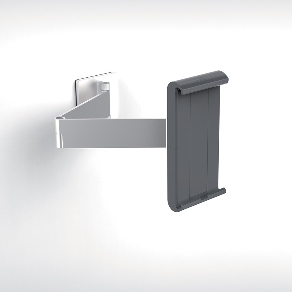 Čvrst i elegantan zidni držač za tablet računala za ugodan rad ili prezentiranje. Fleksibilna potporna ruka nudi brojne mogućnosti podešavanja za optimalnu čitljivost tableta.