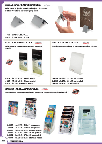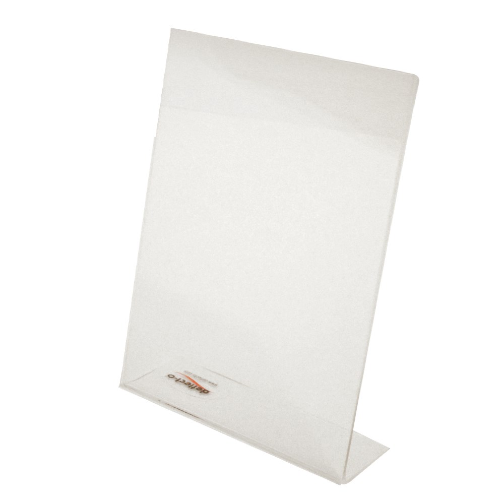 Stolni stalak od prozirnog pleksiglasa za umetanje prospekta, obavijesti ili cijenika. L profil. Dostupne razne dimenzije.
