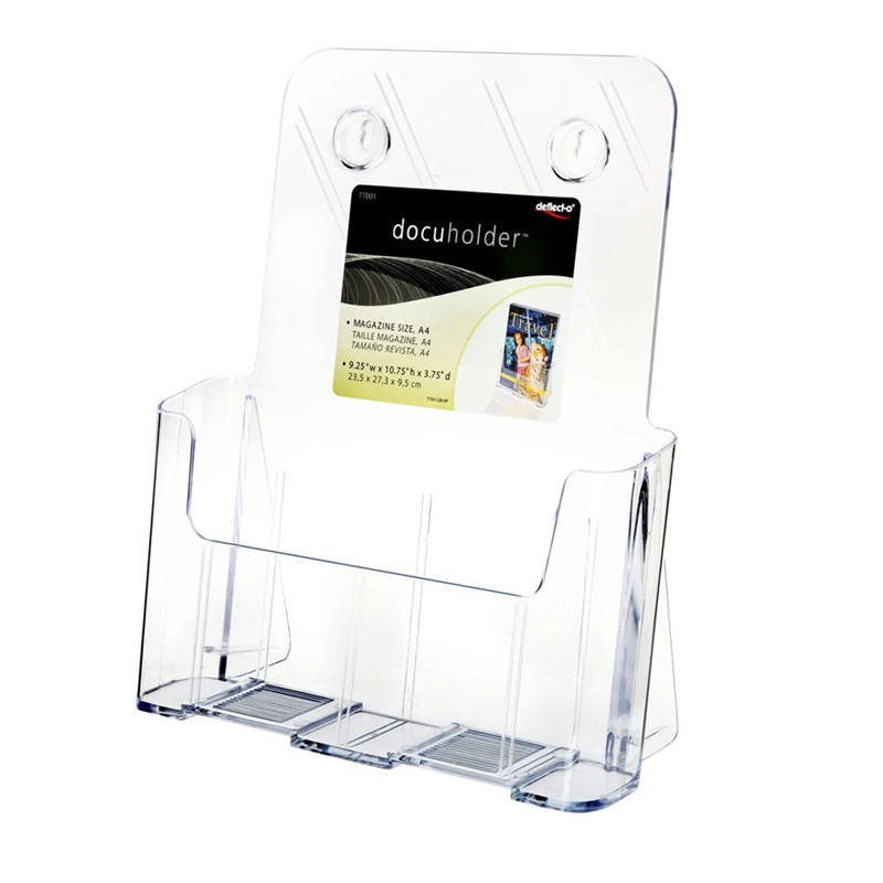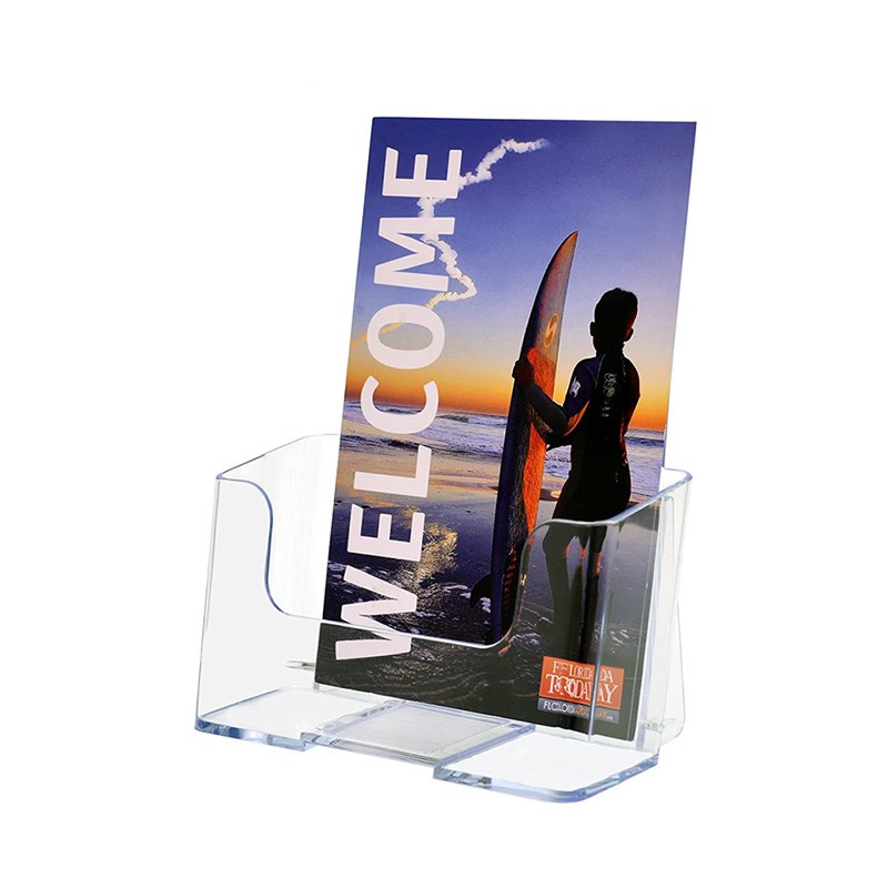 Stalak od pleksiglasa za odlaganje prospekata. Postavljanje na stol ili zid.
