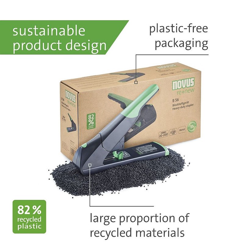 Re+new ekološki je održiva kolekcija kojom se stara otpadna plastika pretvara u novu klamericu ili bušilicu dizajnirane na način da ih se opet može reciklirati. Kolekciju prati i održiva reciklirana ambalaža.