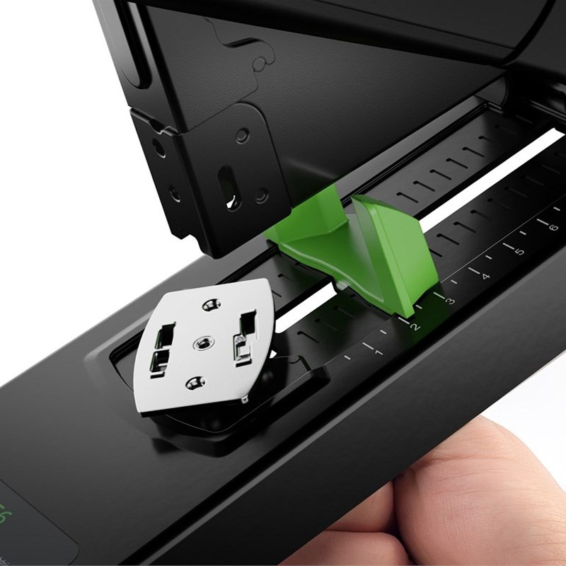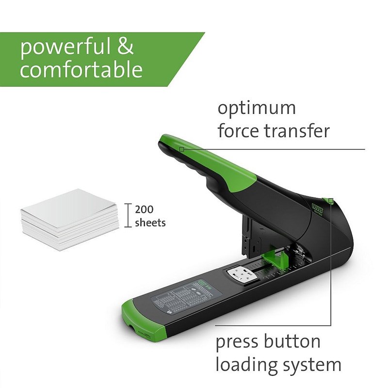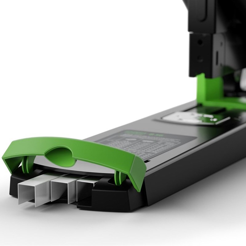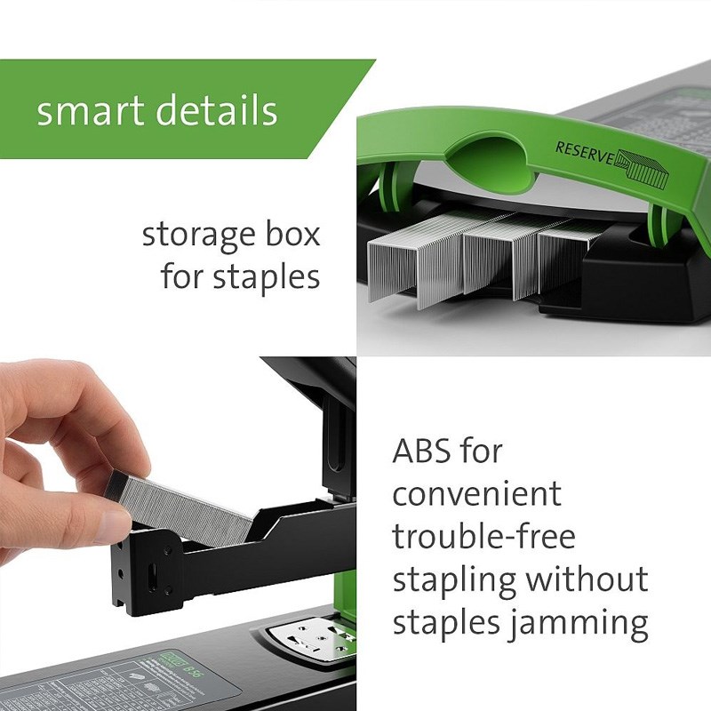 Profesionalni stroj za klamanje do 210 listova koji posjeduje Antiblokirajući sustav (ABS), za udobno, bezbrižno klamanje. Paralelno klamanje. 82% materijala je reciklirana plastika. Punjenje sa prednje strane stroja, pri čemu se pritiskom na gumb oslobađa vodilica, za lakše punjenje. Dvostruke vodilice u magazinu sprečavaju zaglavljivanje klamerica.