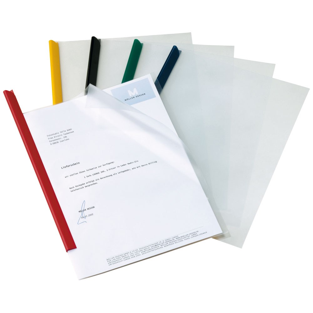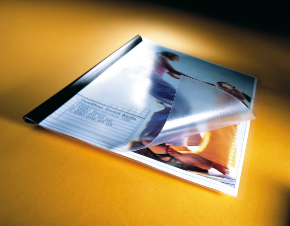 Folije od polipropilena za jednostavan uvez: listove koje želite uvezati umetnete u košuljicu formata A4 (kao presavijen A3 format) tako da čini prednju i zadnju stranu te uvučete u šinu za uvez.