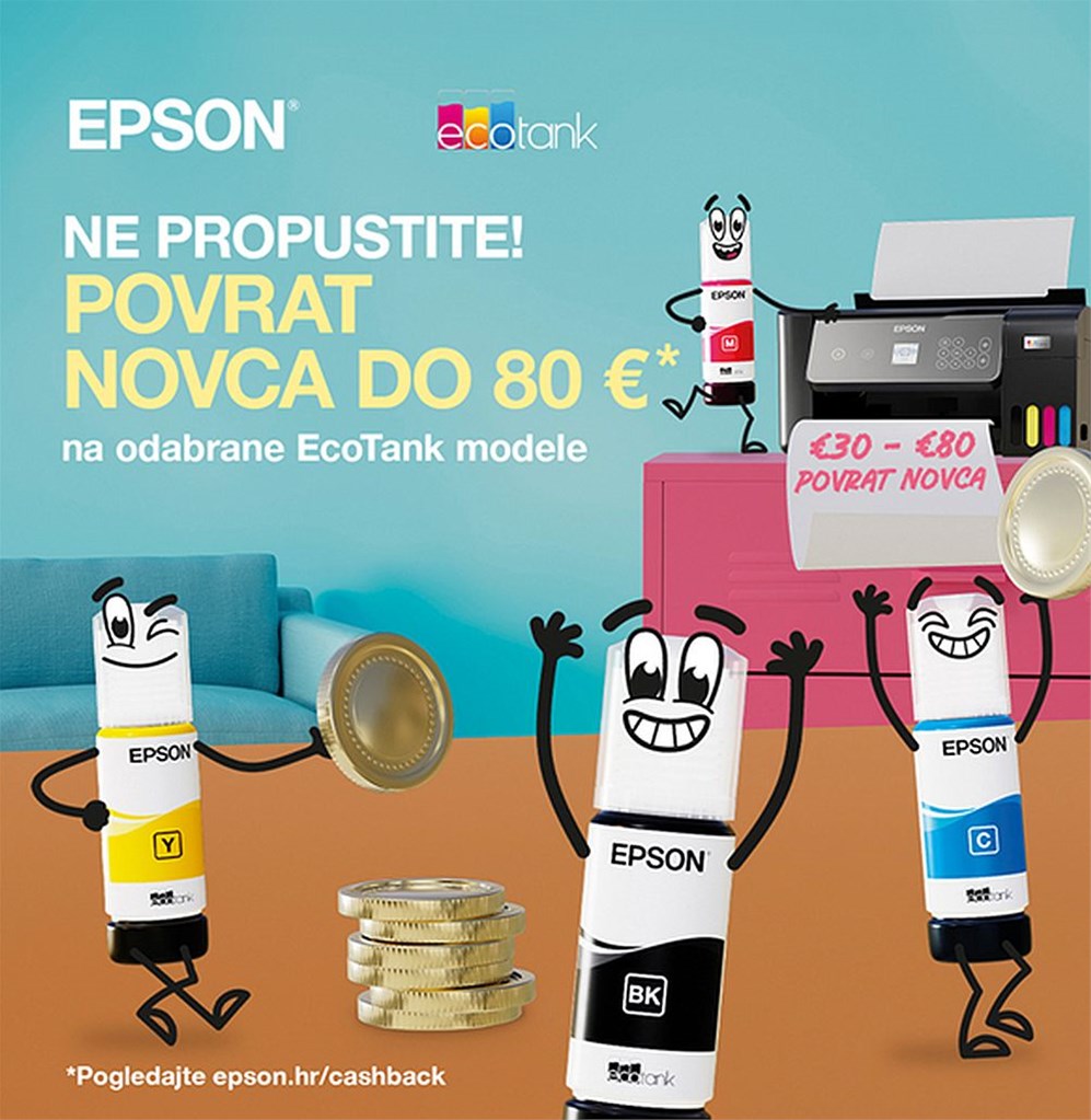 U paketu: 4 standardne bočice s tintom + 1 bočica crne, strujni kabel, CD