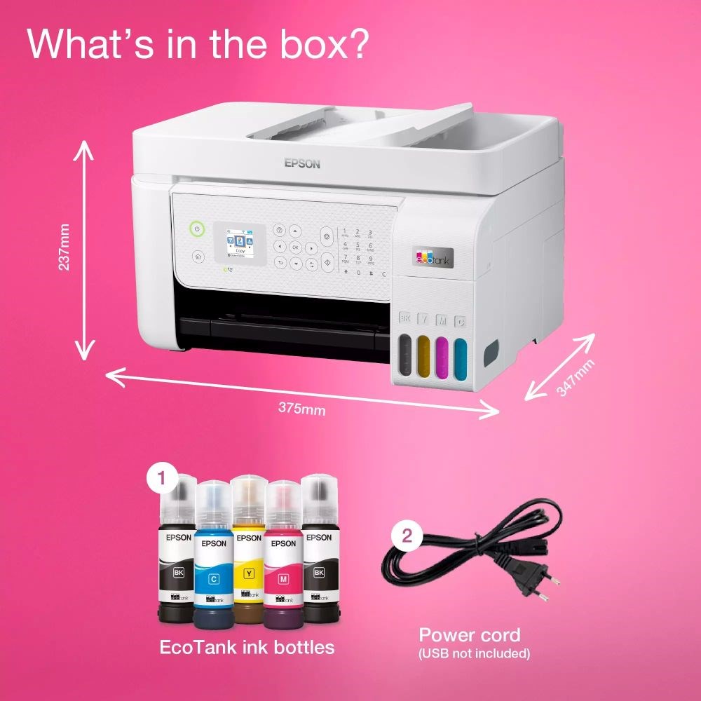 Epson L5316 je tintni pisač, skener i kopirka s faksom, savršen za kućne urede i male urede koji traže iznimno povoljan ispis. Zahvaljujući bočicama s tintom velike zapremine možete ispisati čak do 8.100 stranica crno-bijelo i 6.500 stranica u boji ujednačene kakvoće