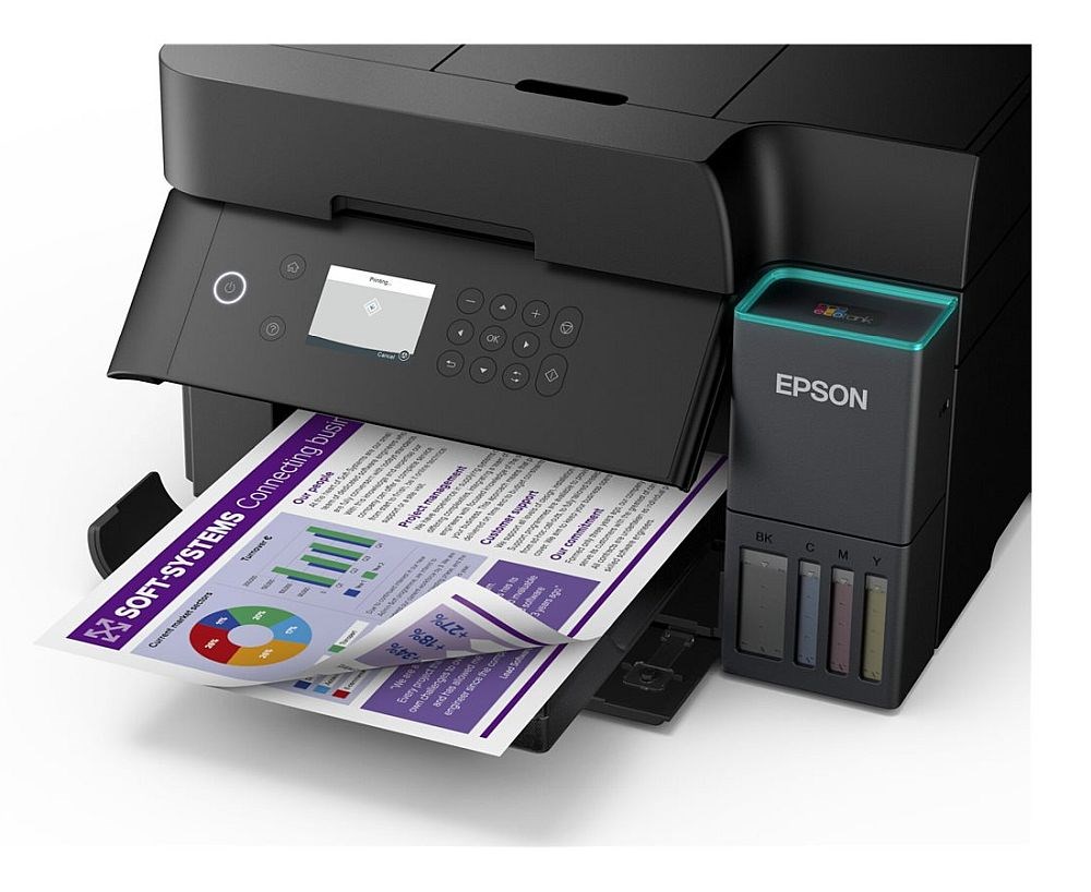Epson L6370 je duplex pisač, skener i kopirka s WiFi-em i mrežom te ugrađenim sustavom za tintu, savršen za male urede, koji traže iznimno povoljan ispis. Bočicama s tintom velike zapremine pružaju više ispisa uz manji trošak, do 15.100 stranica crno -bijelo i 5.500 stranica u boji. Nudi ispis bez ruba Epsonove kakvoće