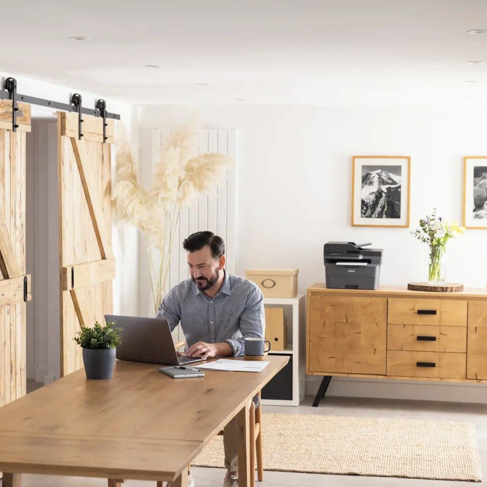Laserski A4 crno-bijeli all-in one s obostranim ispisom te skeniranjem, kopiranjem i faxom uz mogućnost mrežnog i bežičnog ispisa. Ima ispis 34 stranica u minuti. Podržava mobilni ispis (Brother Mobile Connect, Apple AirPrint, Mopria, Web Connect)