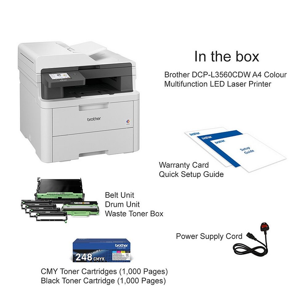 U paketu: pisač, kabel za napajanje, toneri (1000 stranica) i bubanj