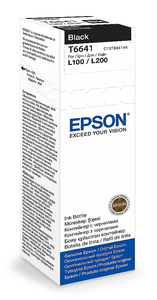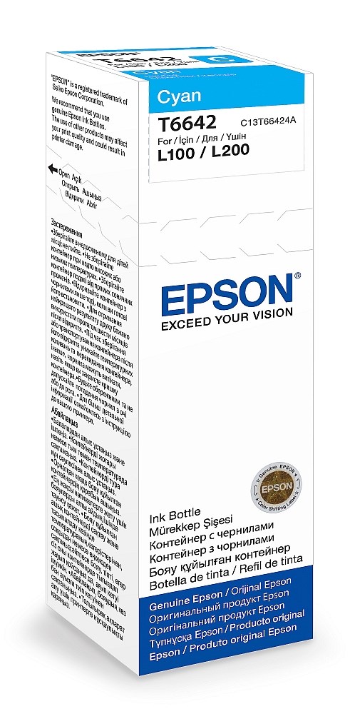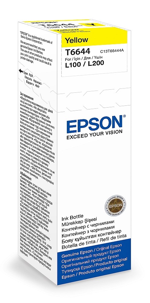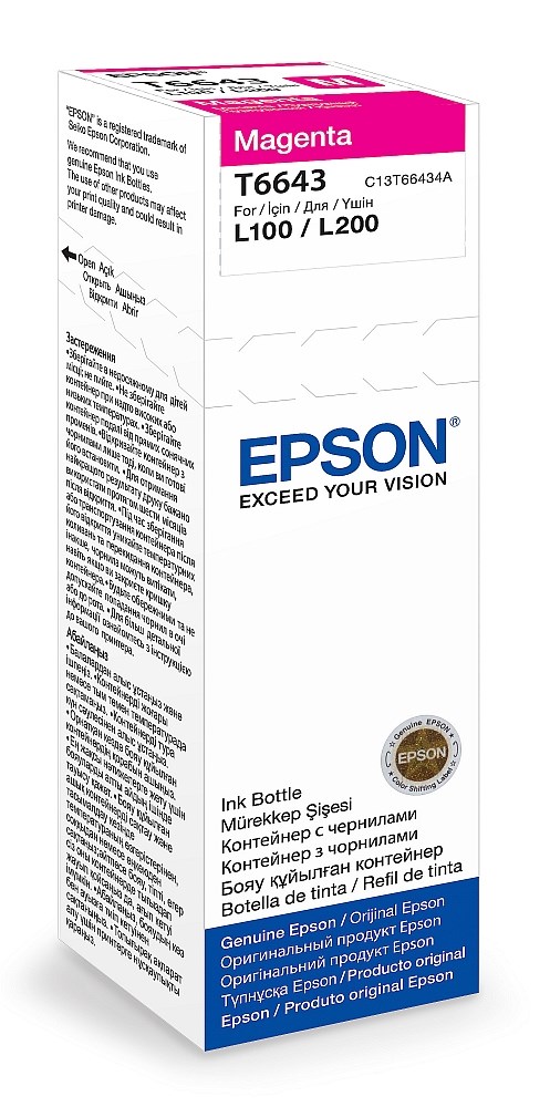 Epsonove originalne bočice s Dye Ink tintom omogućuju jednostavno dodatno punjenje spremnika s tintom zahvaljujući jasnom označavanju i mlaznici koja ne kapa. Primjenjuje se u pisačima: Epson L100, L110, L130, L200, L210, L220, L300, L355, L365, L550 , L565, L1300