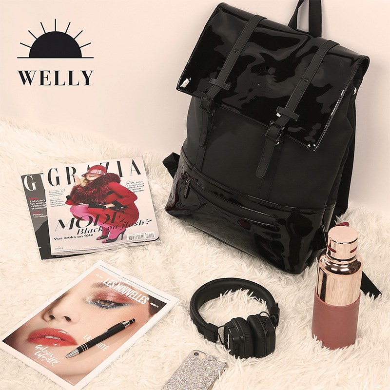 Ruksak od crne mat gume, pomiješane s crnim PVC-om s sjajnim efektom.