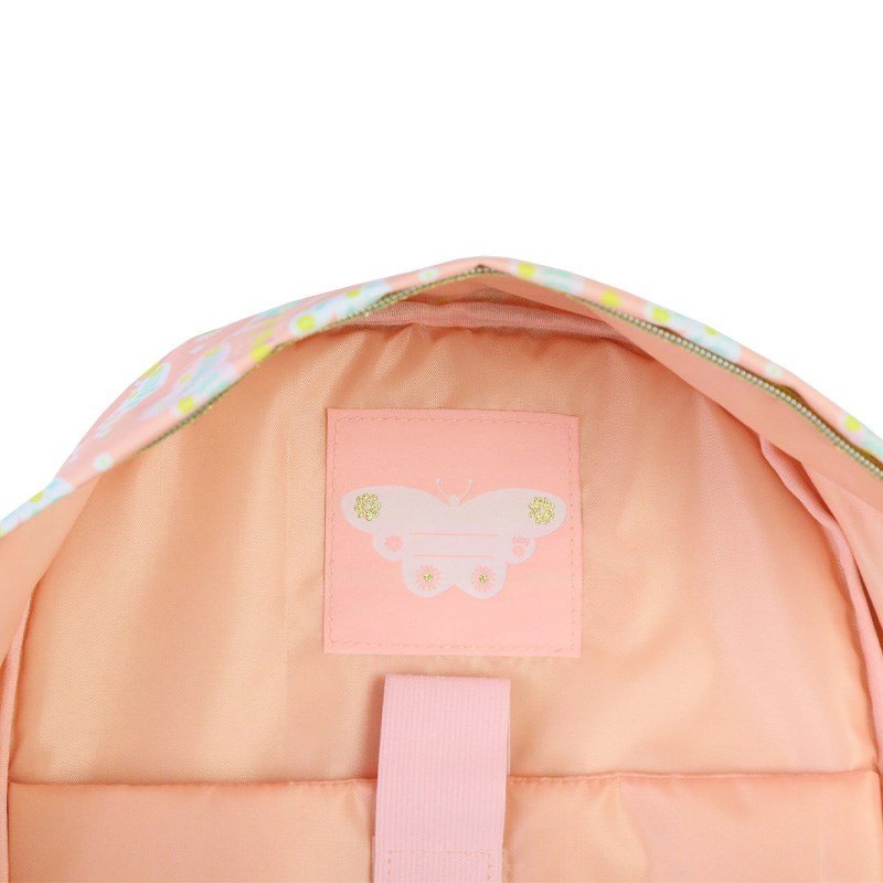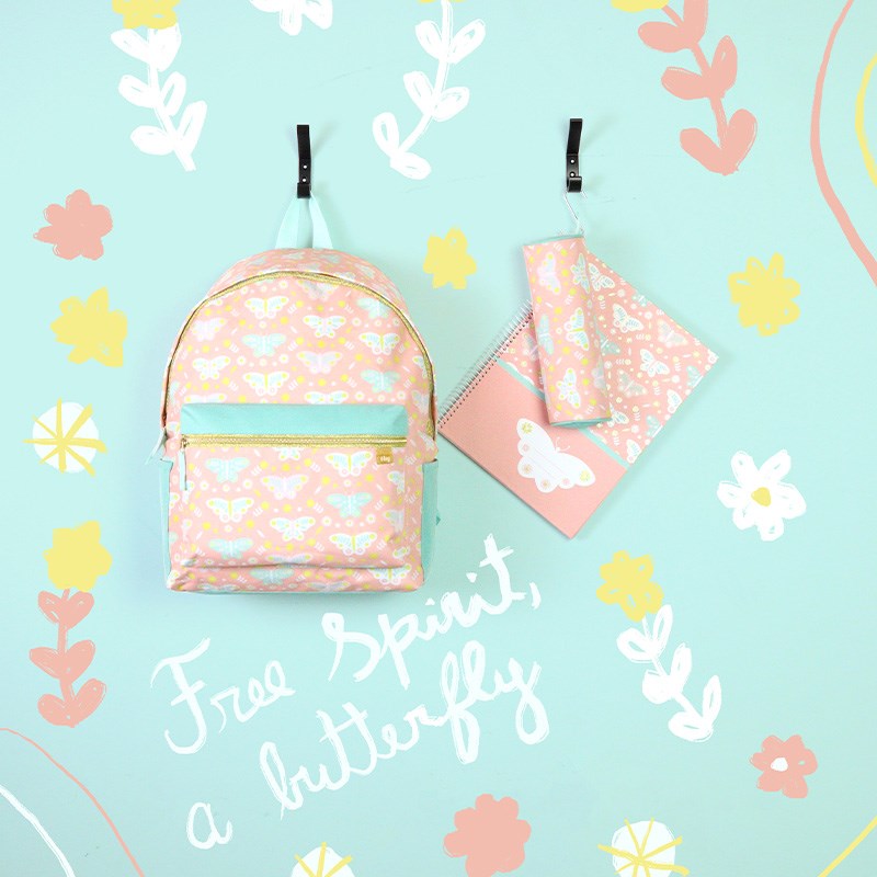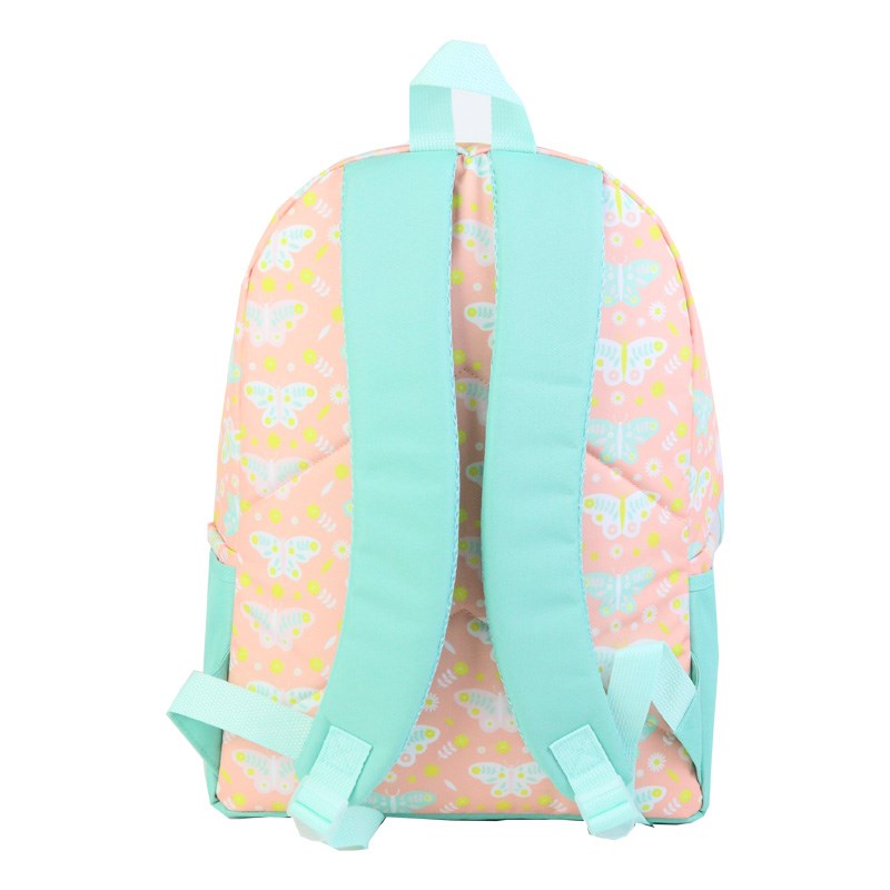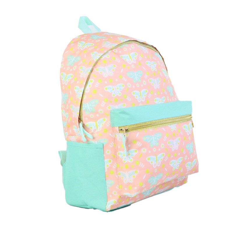 Ruksak za školu s romantičnim dizajnom leptirića. Pojačana leđa, dno i naramenice, prednji džep i pretinac za vodu. Svjetlucavi detalji.