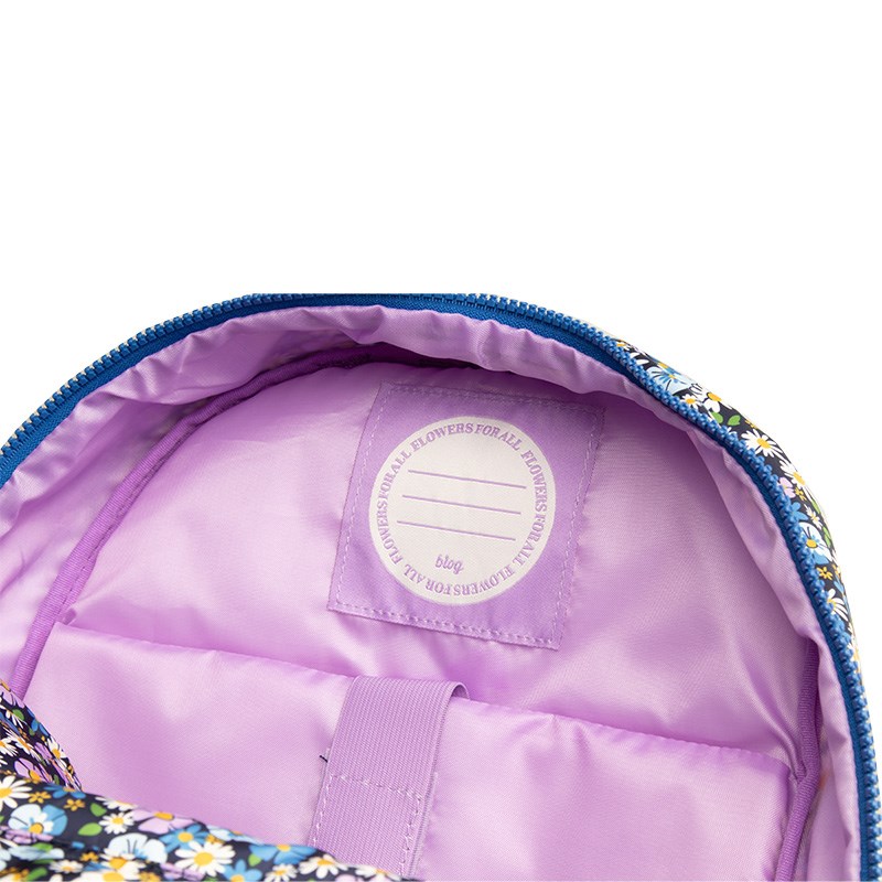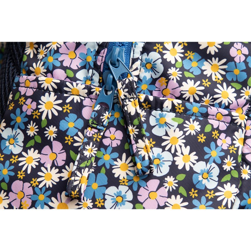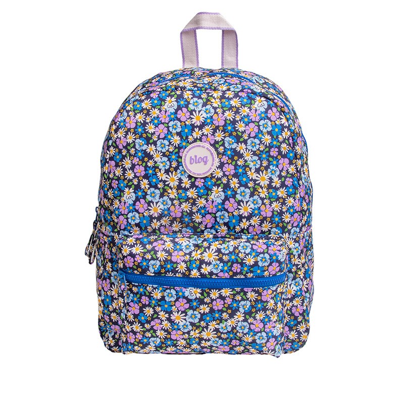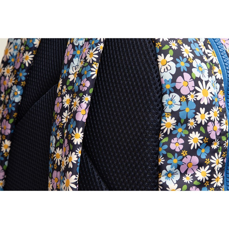 Ruksak za školu cvjetnog motiva. Prednji džep s gumenim detaljima, pojačana leđa i naramenice, te pretinac za laptop.