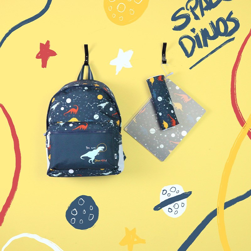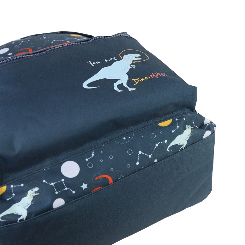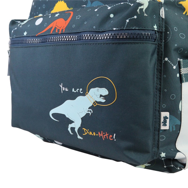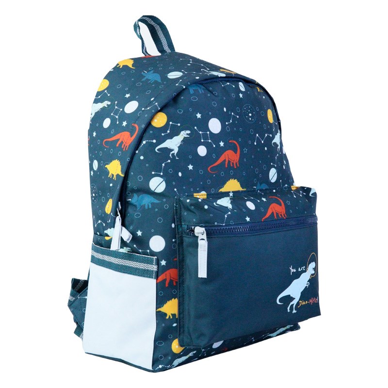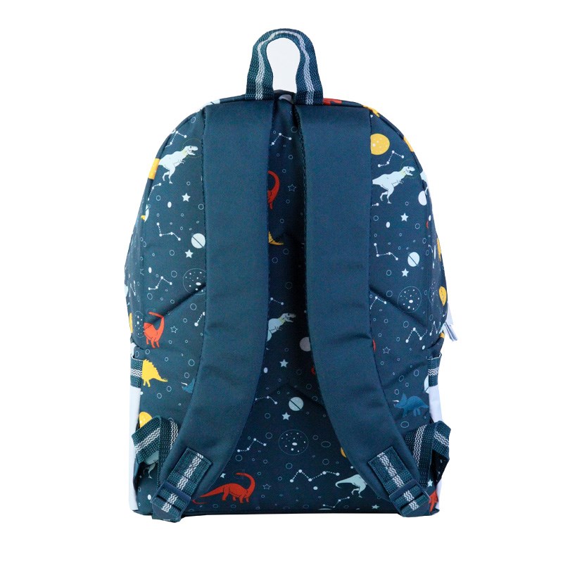 Ruksak za školu s motivima dinosaura. Pojačana leđa i naramenice, odijeljak za laptop, prednji džep.