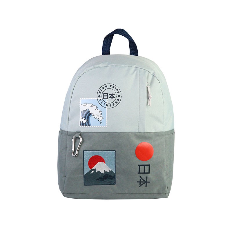 Školski ruksak s printanim motivima vulkana i Japana. Pojačani stražnji dio i naramenice. Unutarnji džepovi, te poseban pretinac za laptop.