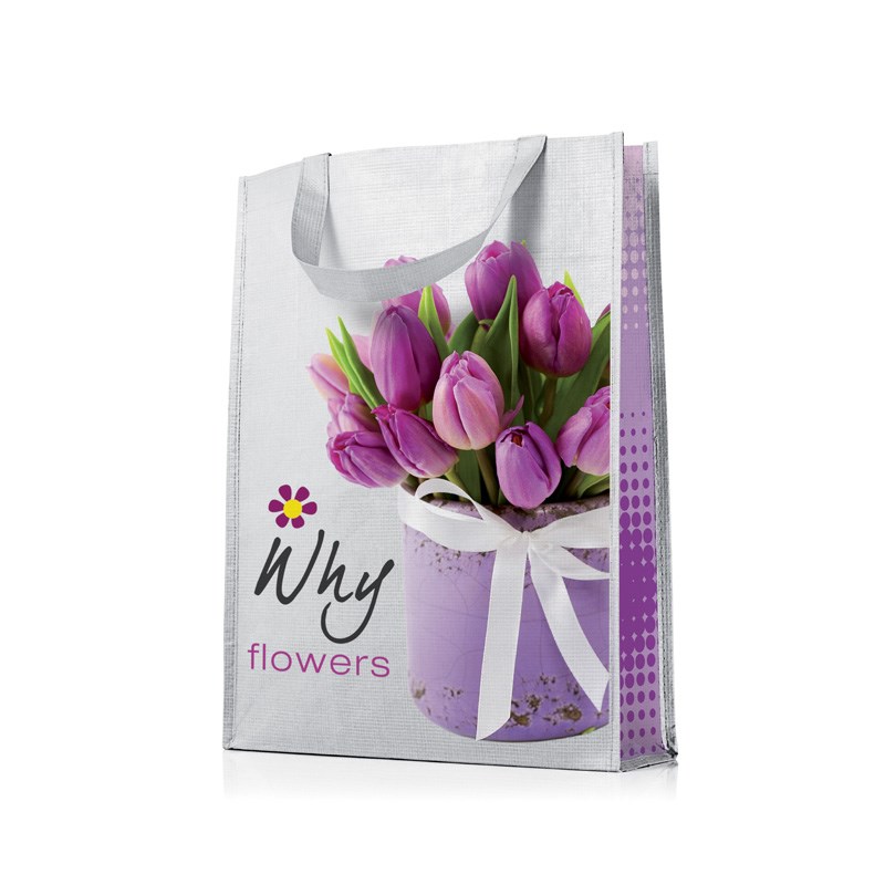 Vertikalna torba za kupnju s kratkim ručkama od samog materijala ili PP trake (duljina: 36 cm, širina: 2,5 cm)