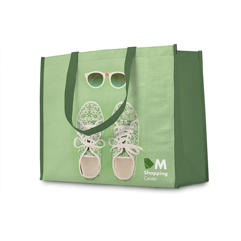 Horizontalna torba za kupovinu s dugim ručkama od samog materijala ili PP trake (duljina: 60 cm, širina: 2,5 cm)