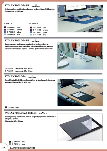 Visokokvalitetna potpisna mapa s 20 razdjelnika za jednostavno razvrstavanje pošte, dokumenata i slično. Korice od čvrstog RC sivog kartona presvučenog kvalitetnom tkaninom u boji, prozorčić za umetanje natpisa. Dimenzije: 240x350x25 mm