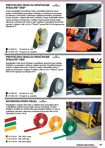 Samoljepljive trake za označavanje radiona, skladišta i drugih prostora. Robusni pvc otporan na habanje, slabe kemikalije i otapala, čvrsto ljepljenje na razne čište i ravne podloge.