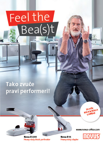 Snažna bušilica za papir. Kapacitet bušenja: 65 listova odjednom (2 rupe, razmak 8 cm). Jamstvo 10 godina.