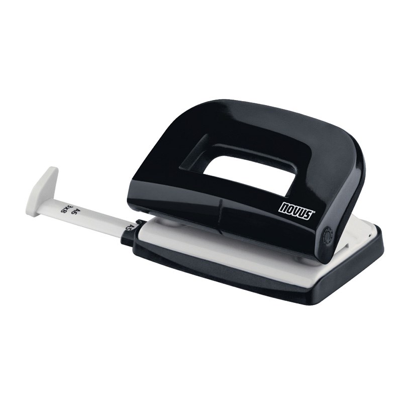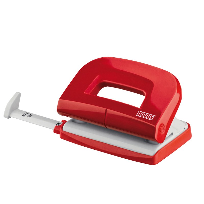 Mala uredska bušilica za papir. Metalno podnožje i radni dijelovi, plastični pokrov.