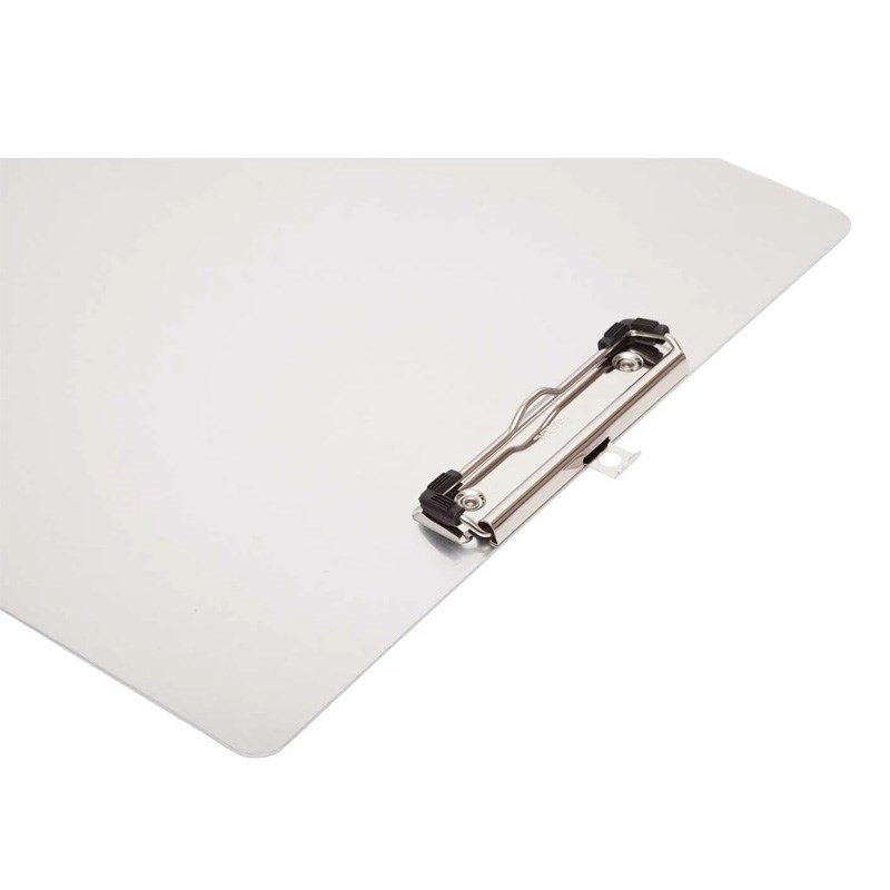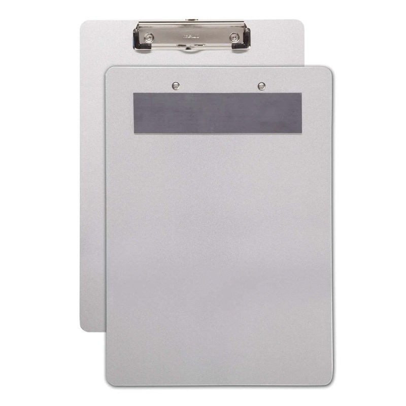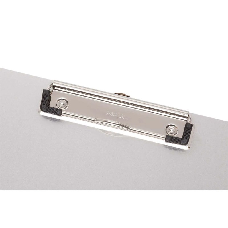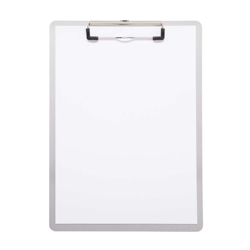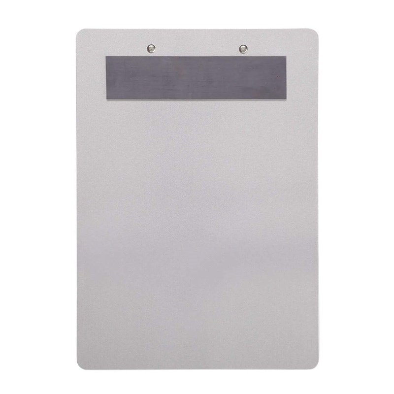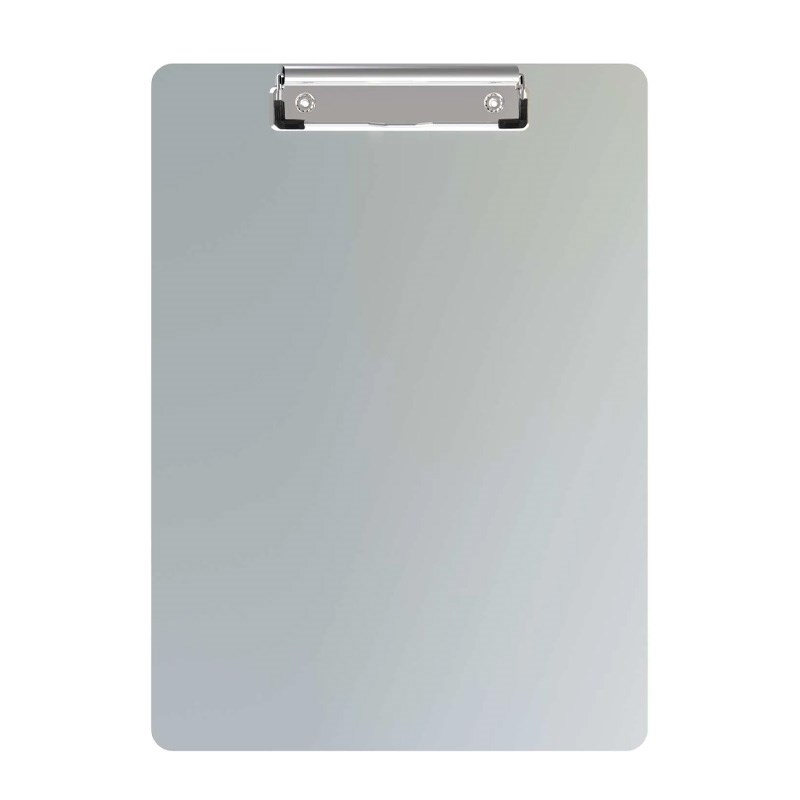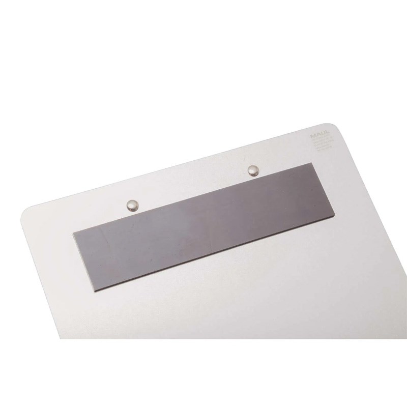 Aluminijska podloga A4 formata s kopčom i velikom magnetskom trakom na stražnjoj strani.