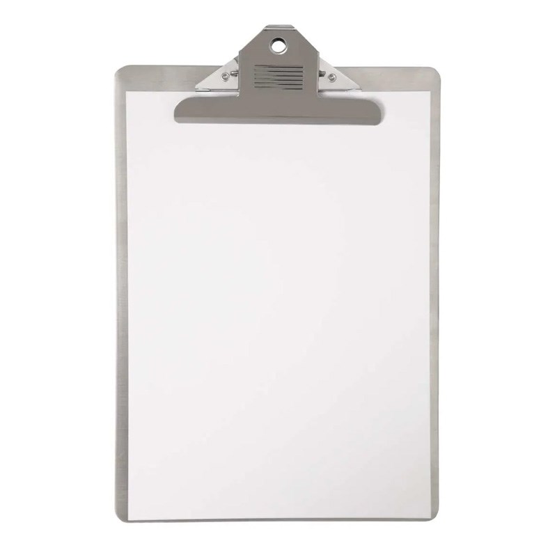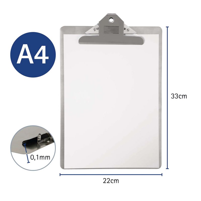 Podloga A4 formata od nehrđajućeg čelika s velikom kopčom. Potpuno otporno na hrđu i koroziju.
