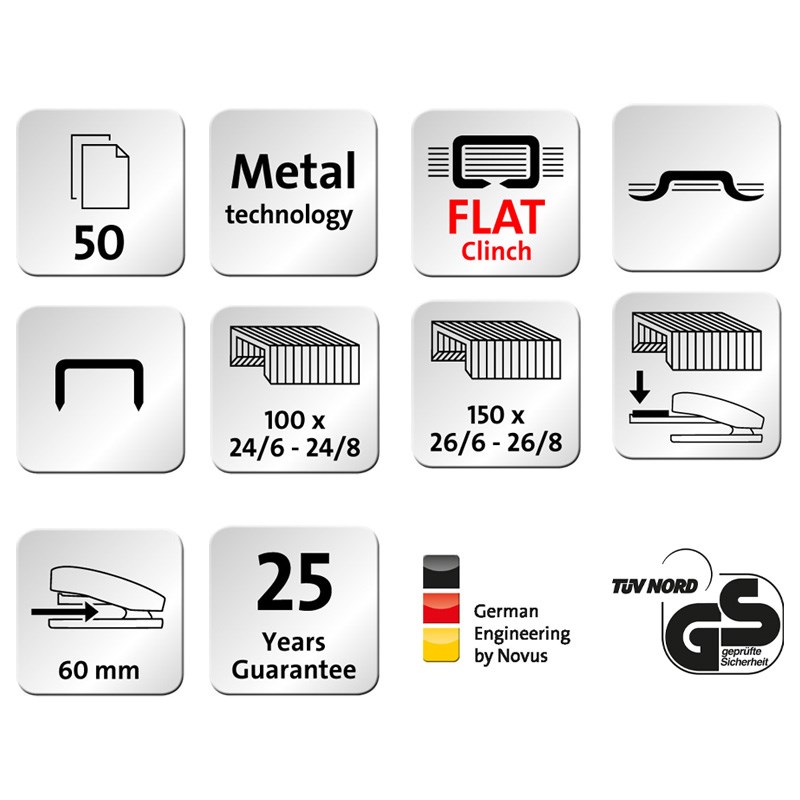 Prva stolna klamerica na svijetu sa flat-clinch tehnologijom (plošno spajanje štedi 30% prostora).